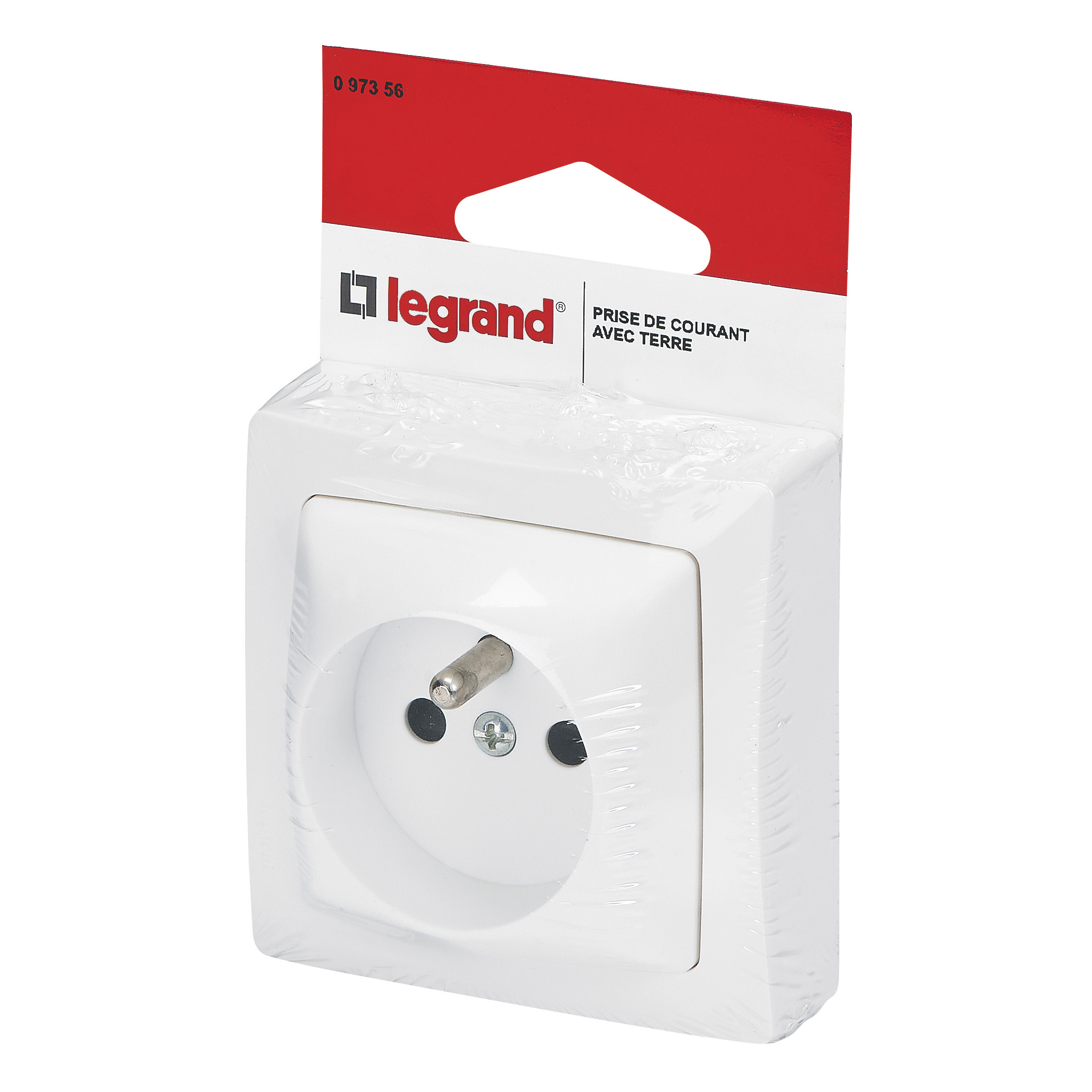 Prise de courant avec terre Appareillage Saillie - bornes auto - emballage brochable - Blanc