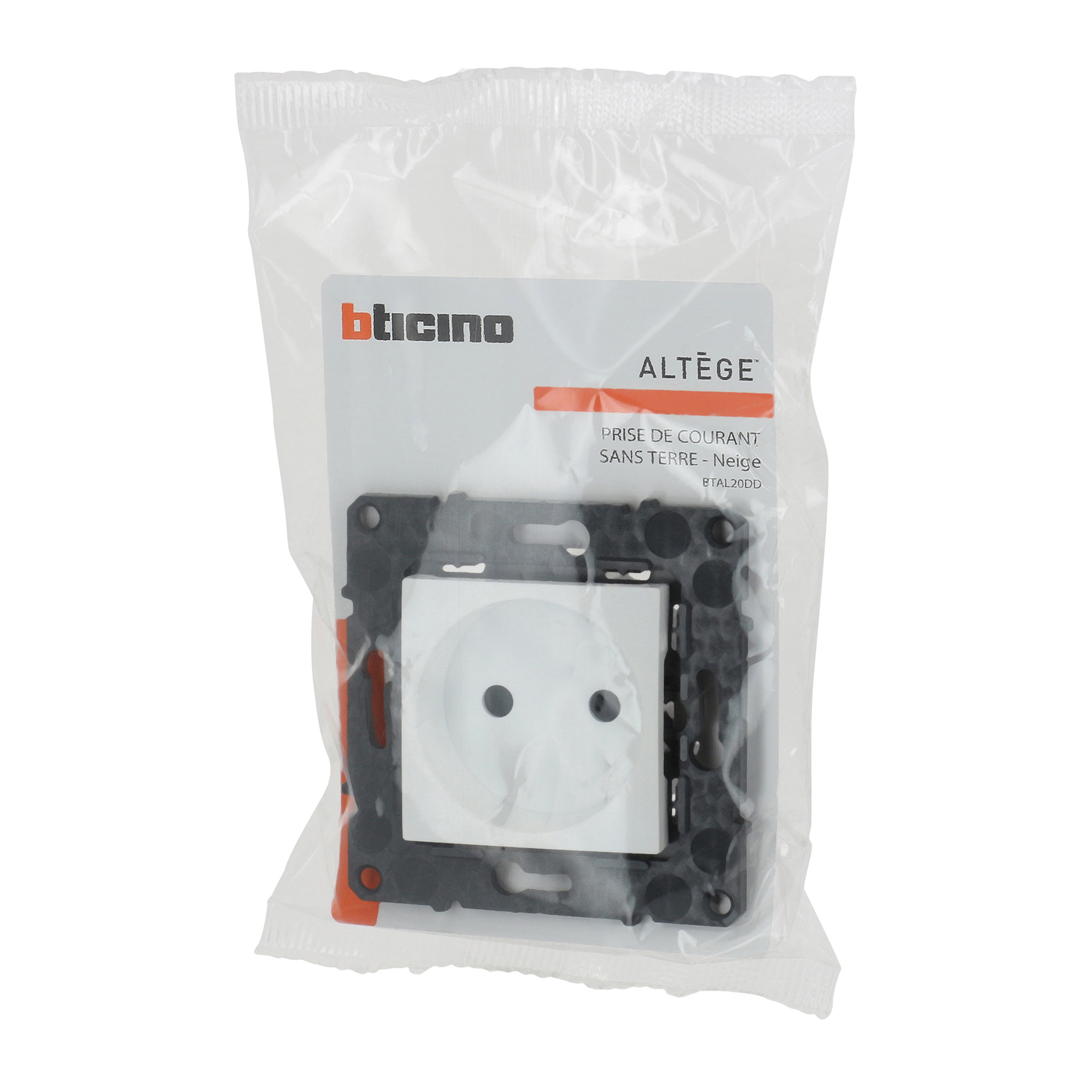Prise de courant sans terre Altège 16A avec connexion à bornes automatiques - finition Neige