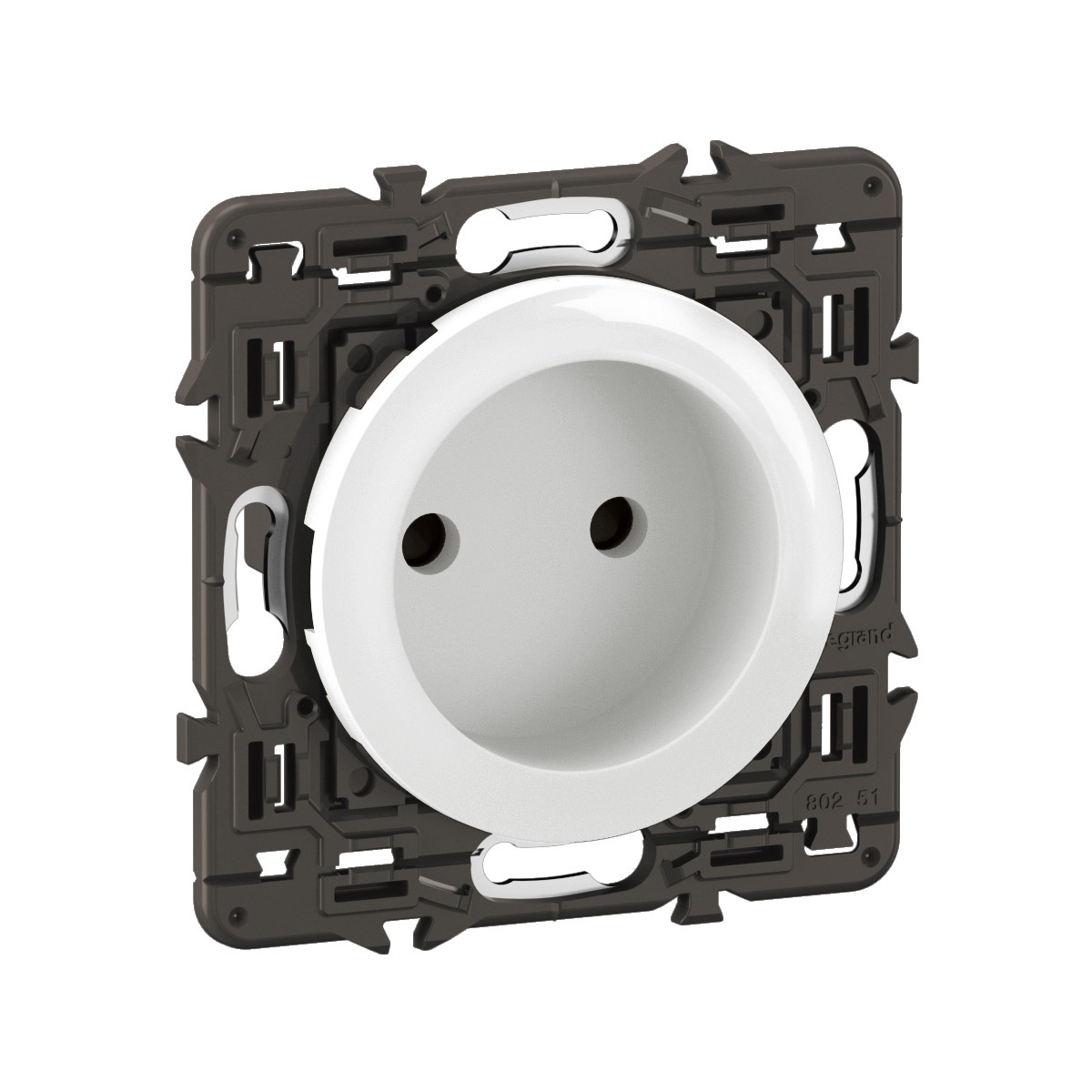 Prise de courant sans terre Céliane - Blanc avec support, à équiper d'une plaque