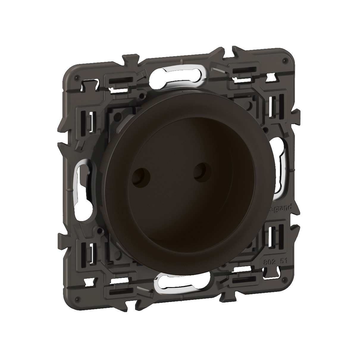 Prise de courant sans terre Céliane - Noir avec support, à équiper d'une plaque