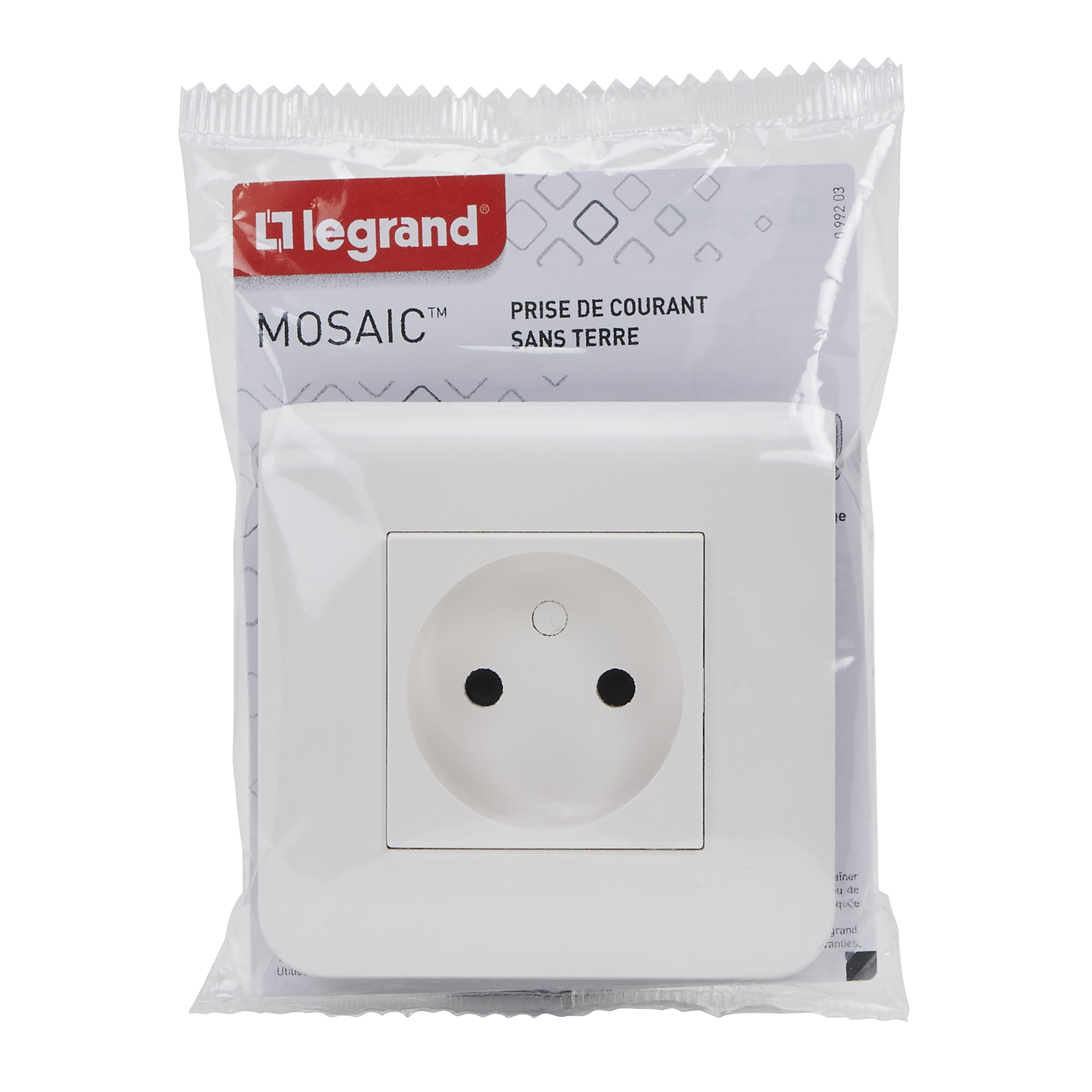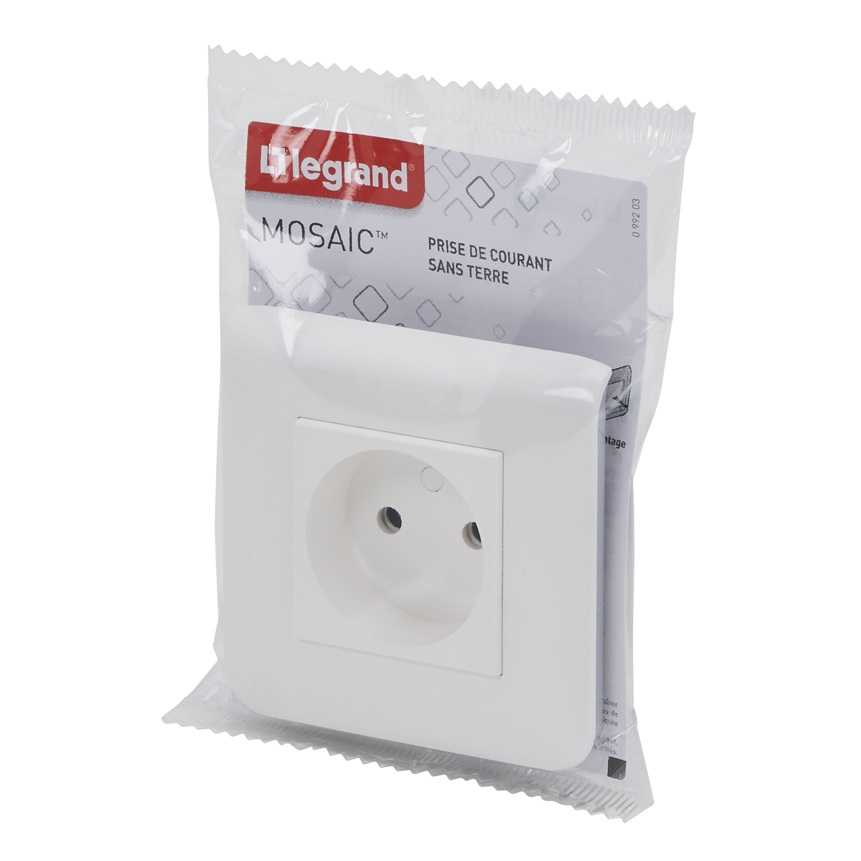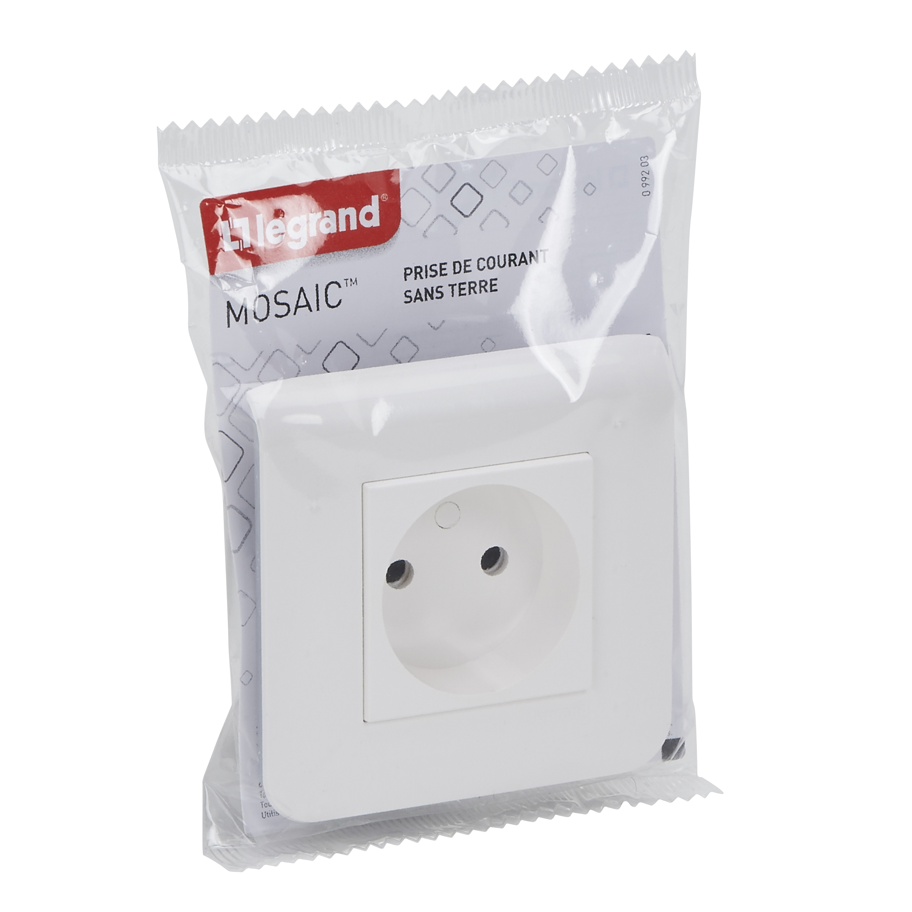 Prise de courant sans terre Mosaic à bornes automatiques blanc avec plaque et fixation à vis