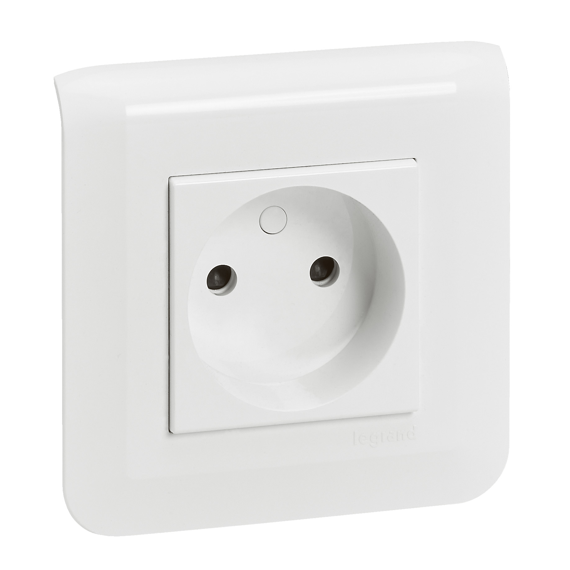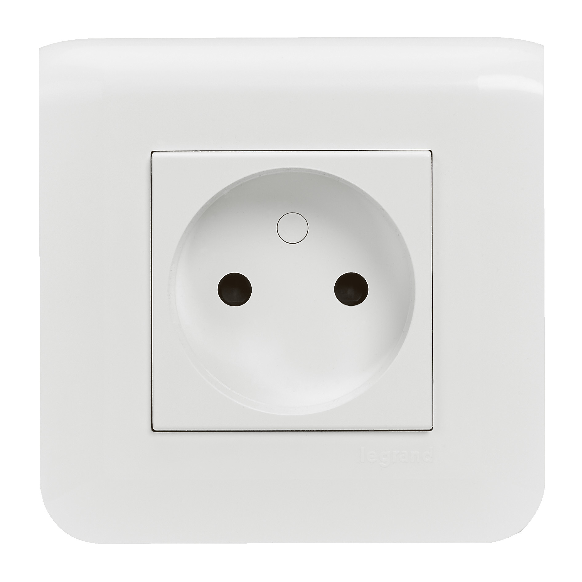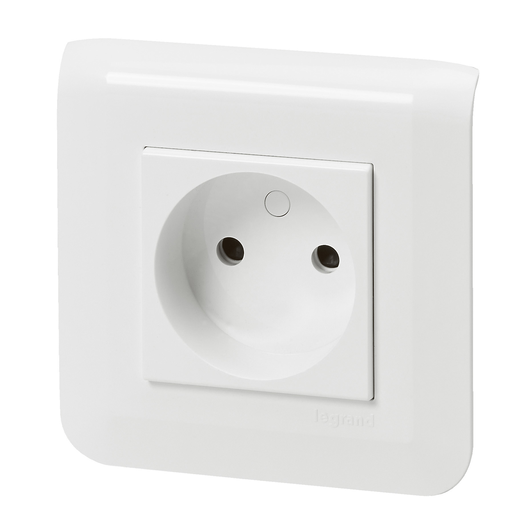 Prise de courant sans terre Mosaic à bornes automatiques blanc avec plaque et fixation à vis