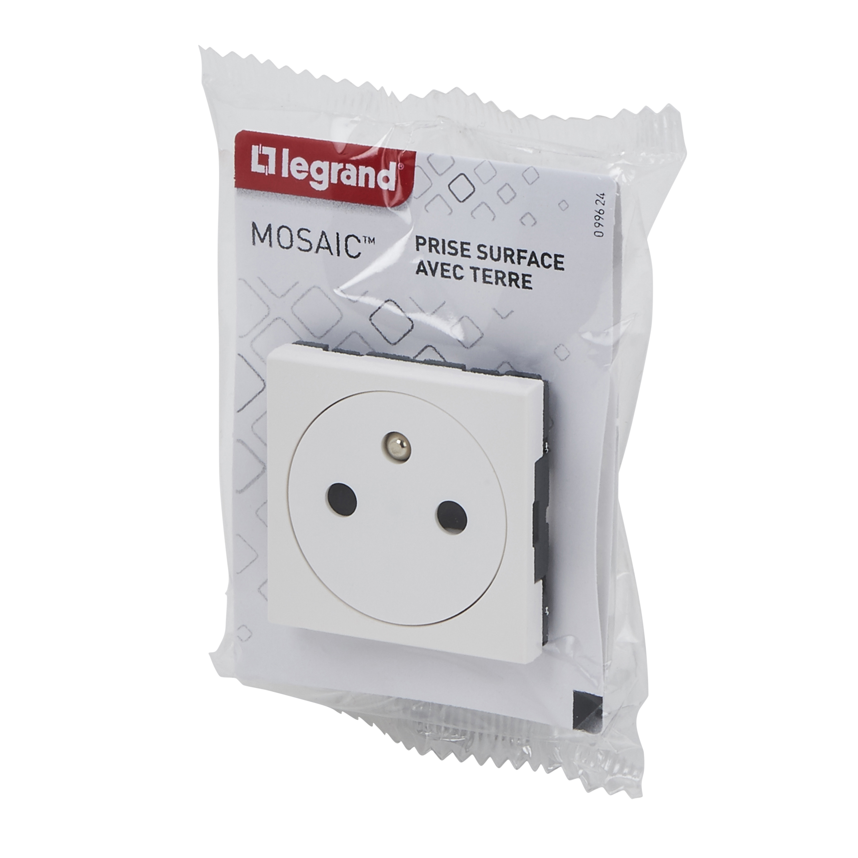 Mosaic, une prise de courant répondant aux tendances actuelles, à compléter d'une plaque de finition avec support