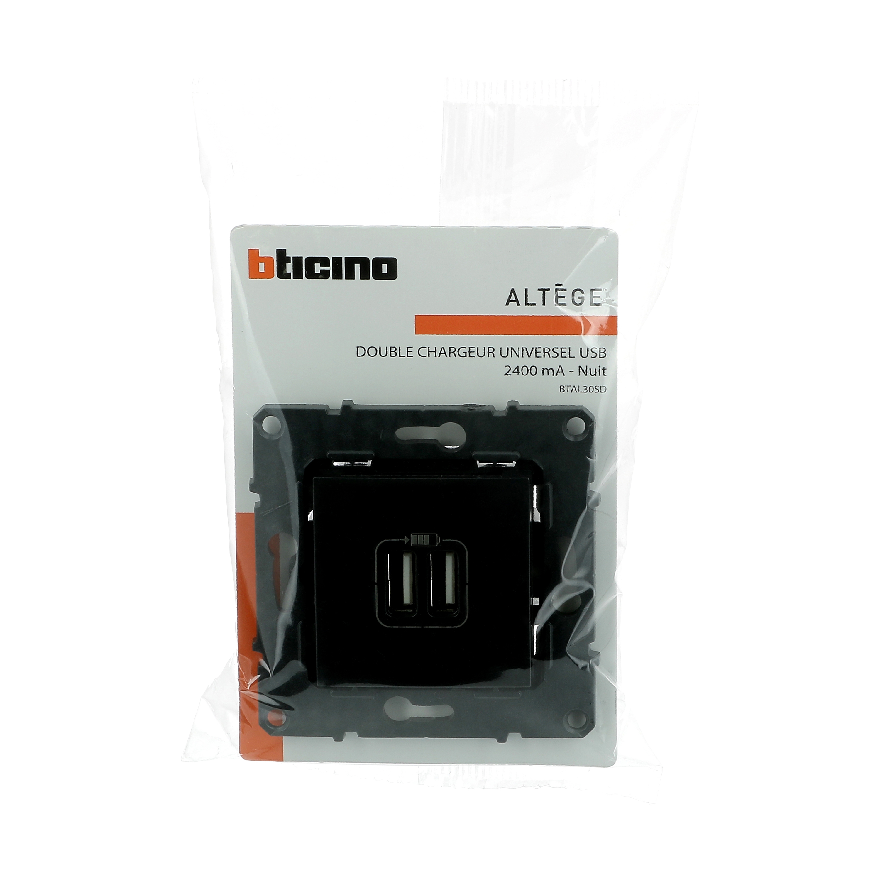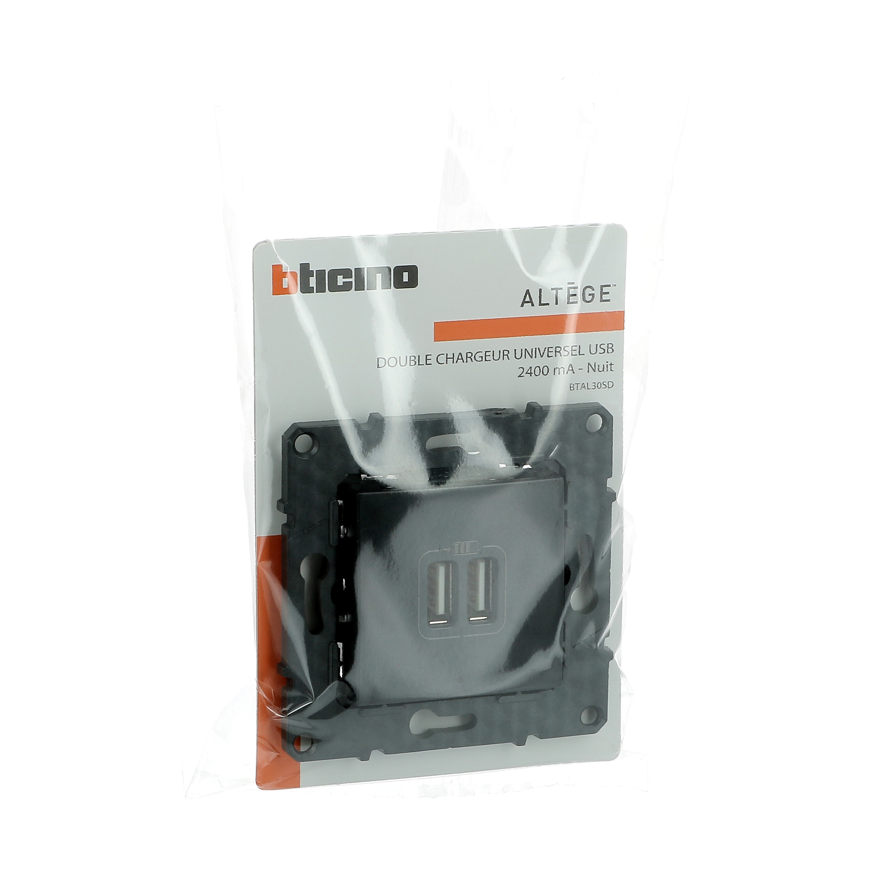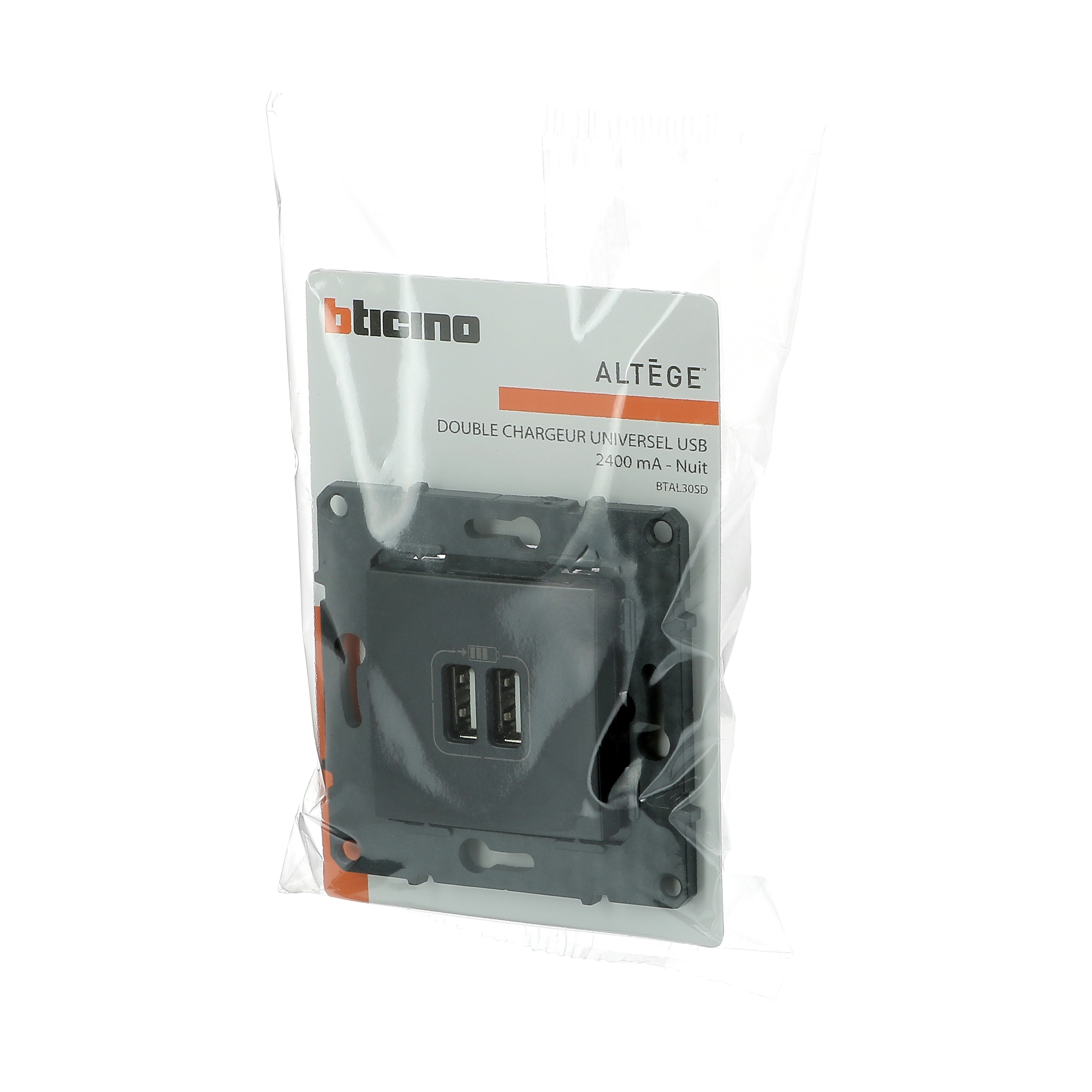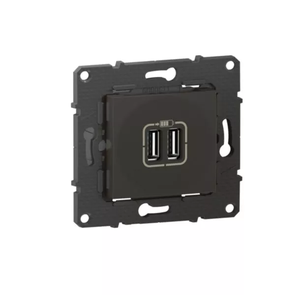 Prise double USB 3A 15W Altège finition Nuit (noir), à équiper d'une plaque de finition