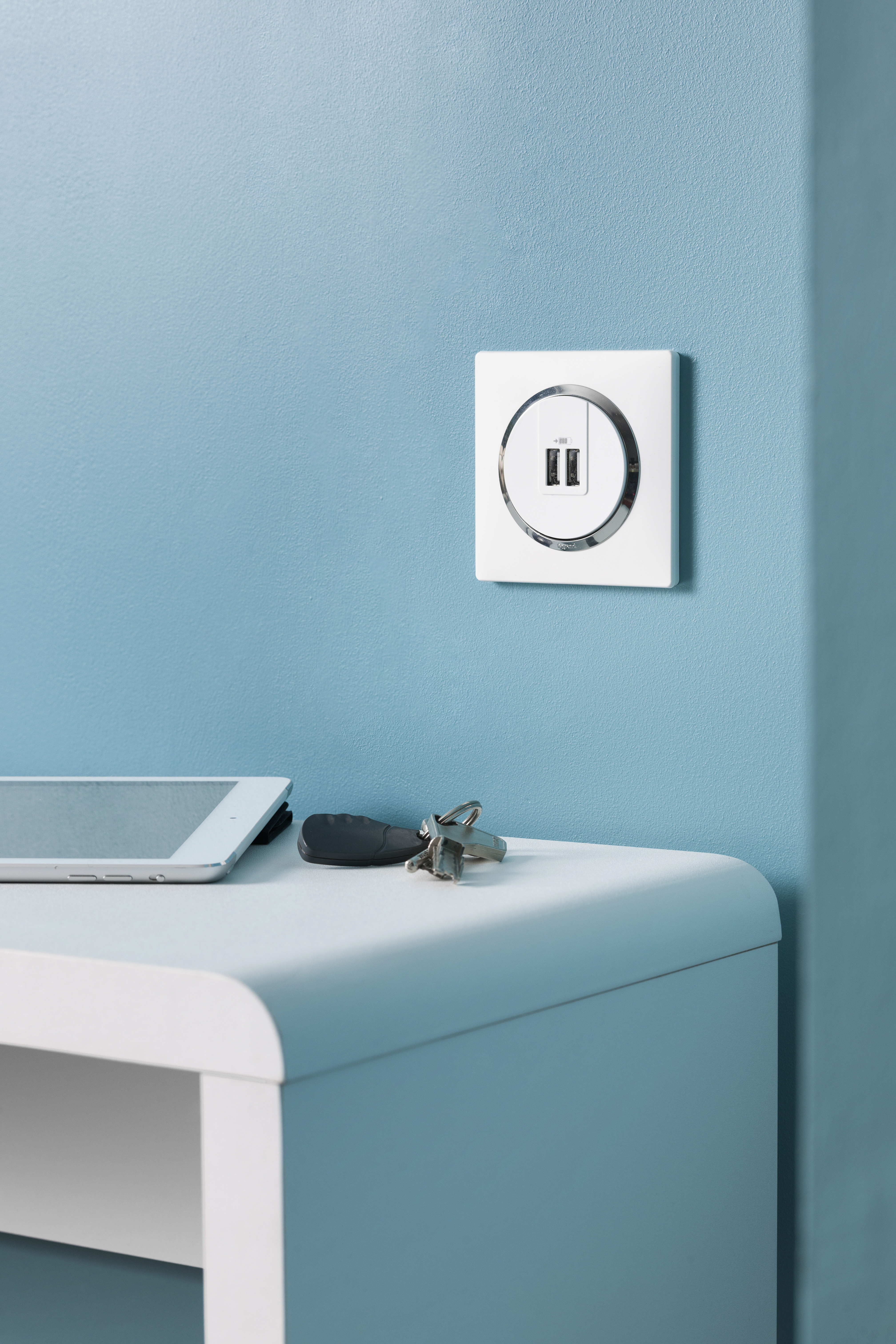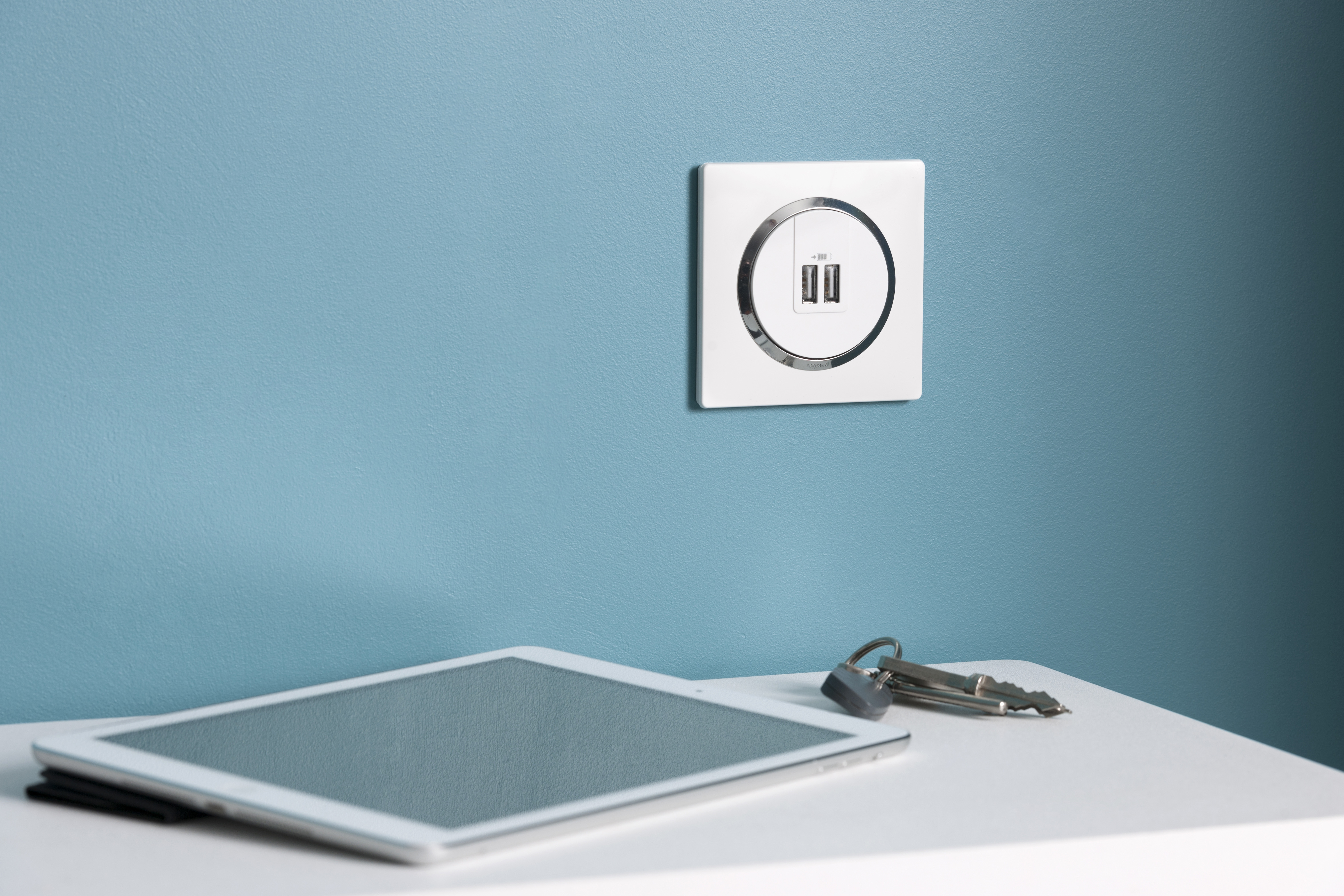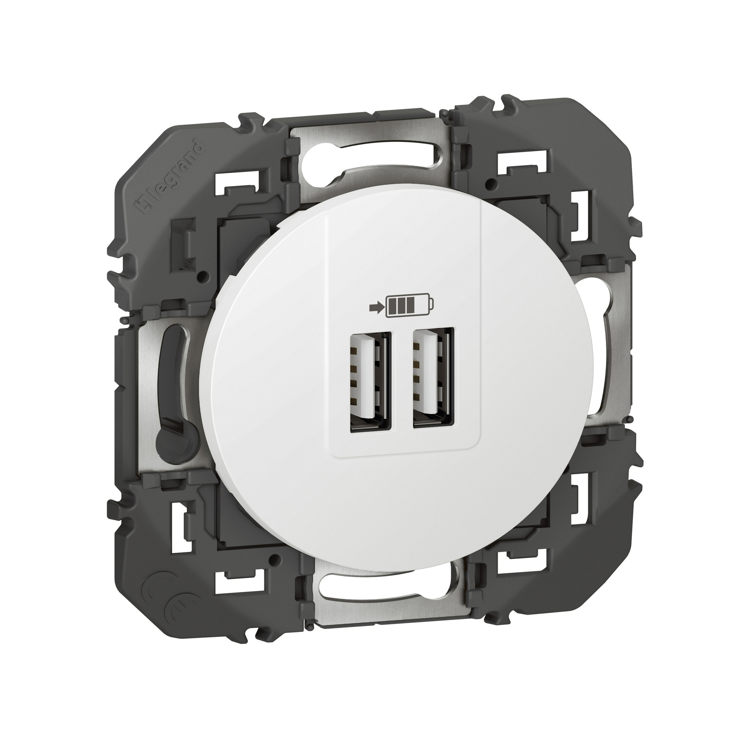 Prise double USB Type-A dooxie 3A 15W finition blanc, à équiper d'une plaque de finition - emballage blister