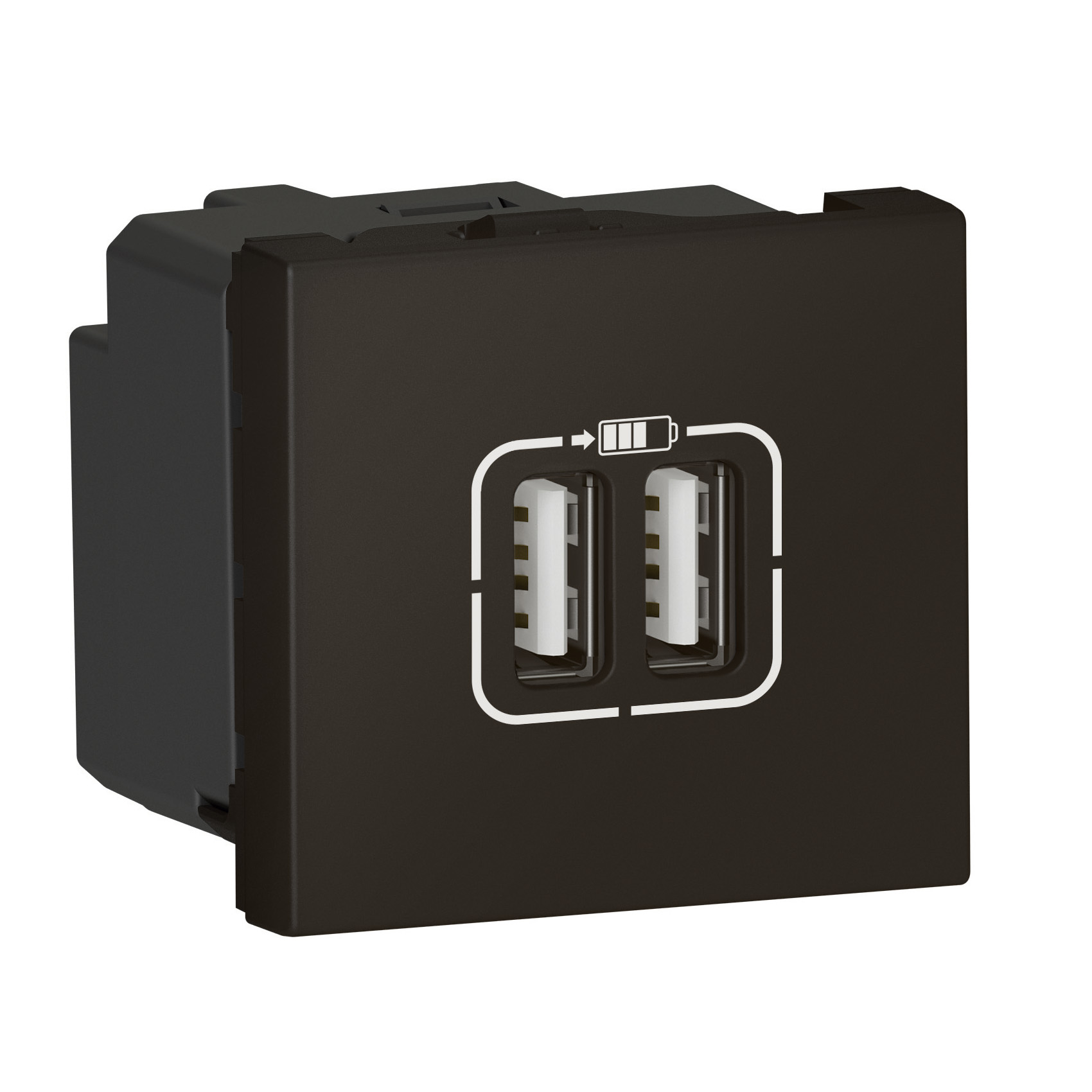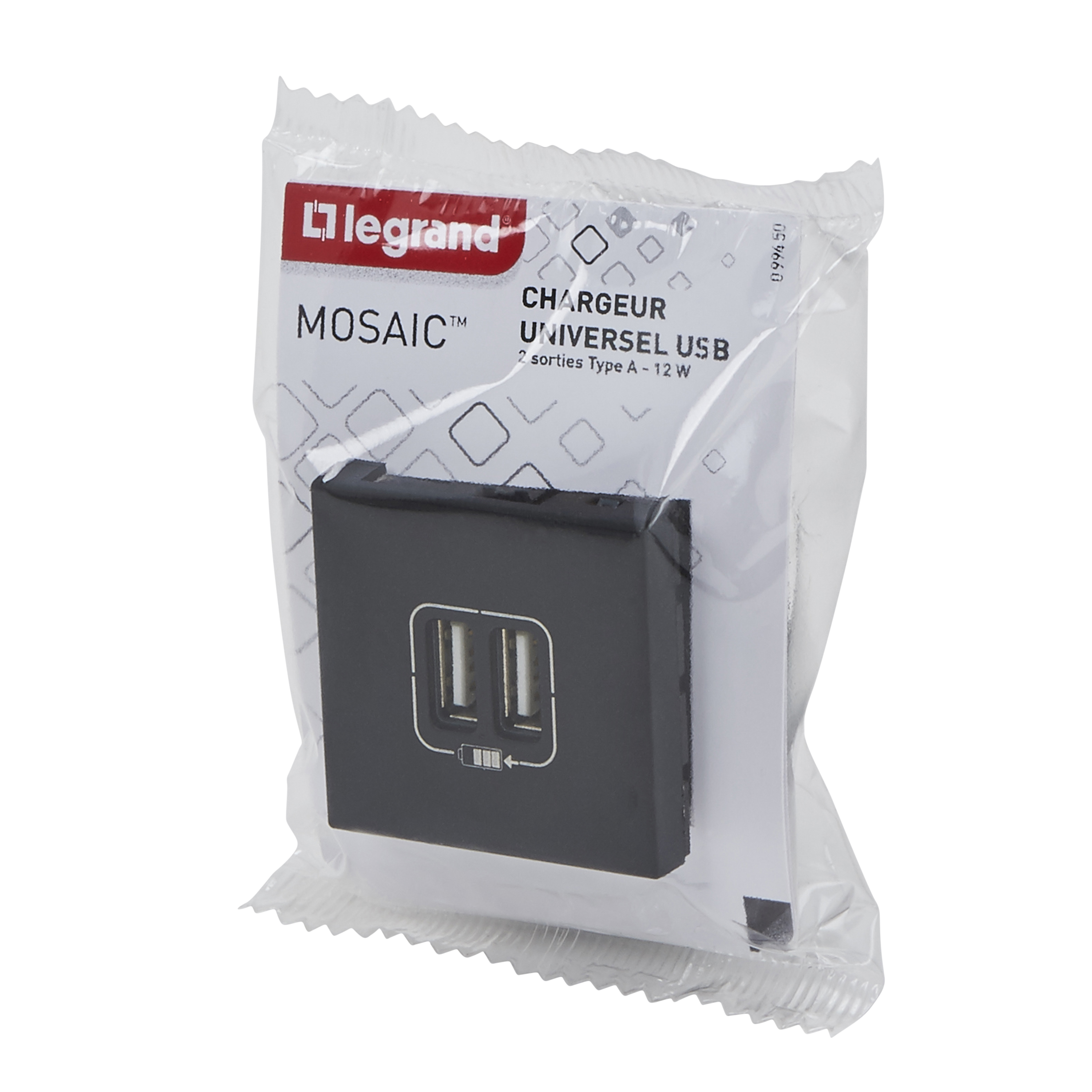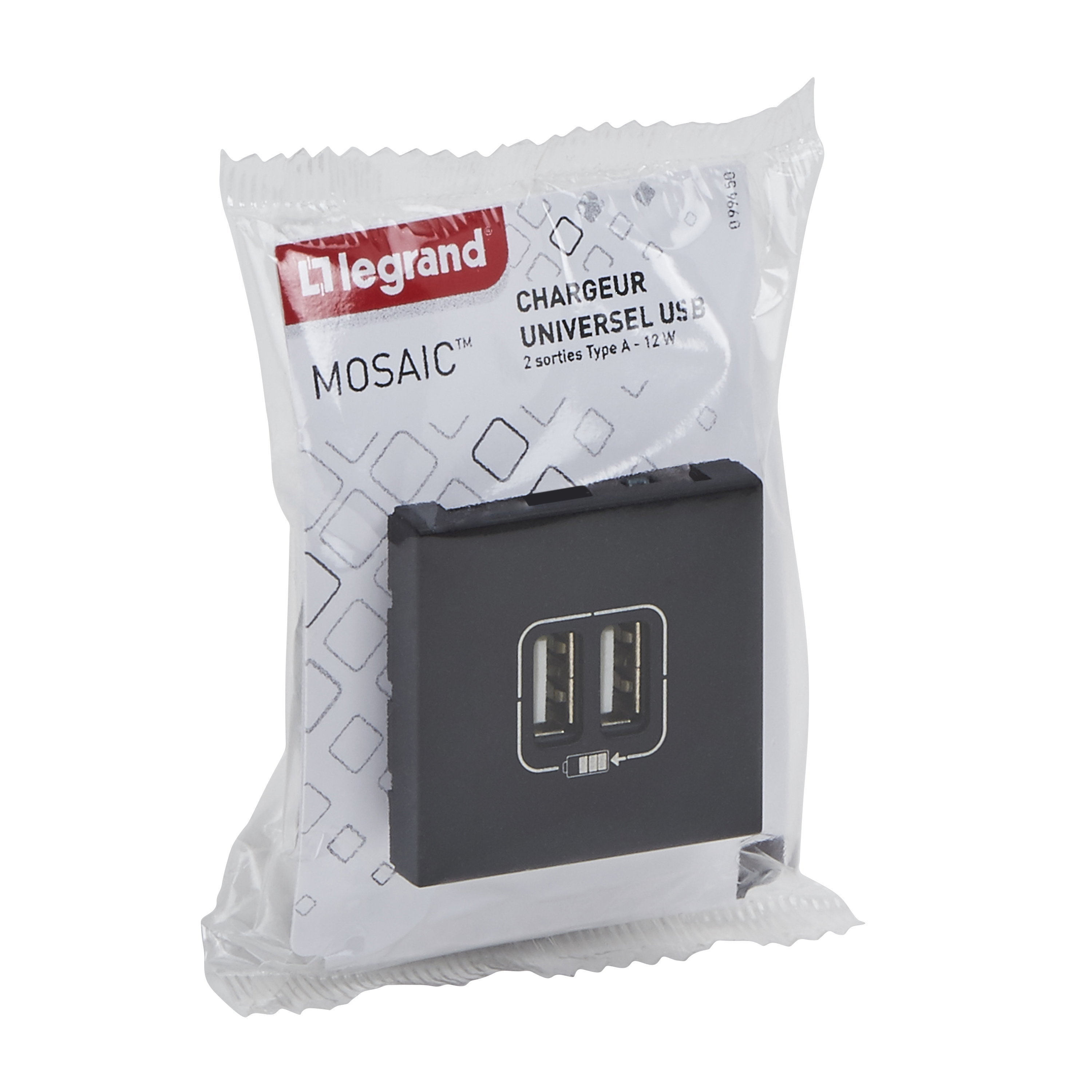 Prise double USB Type-A Mosaic 3A 15W 2 modules - noir mat