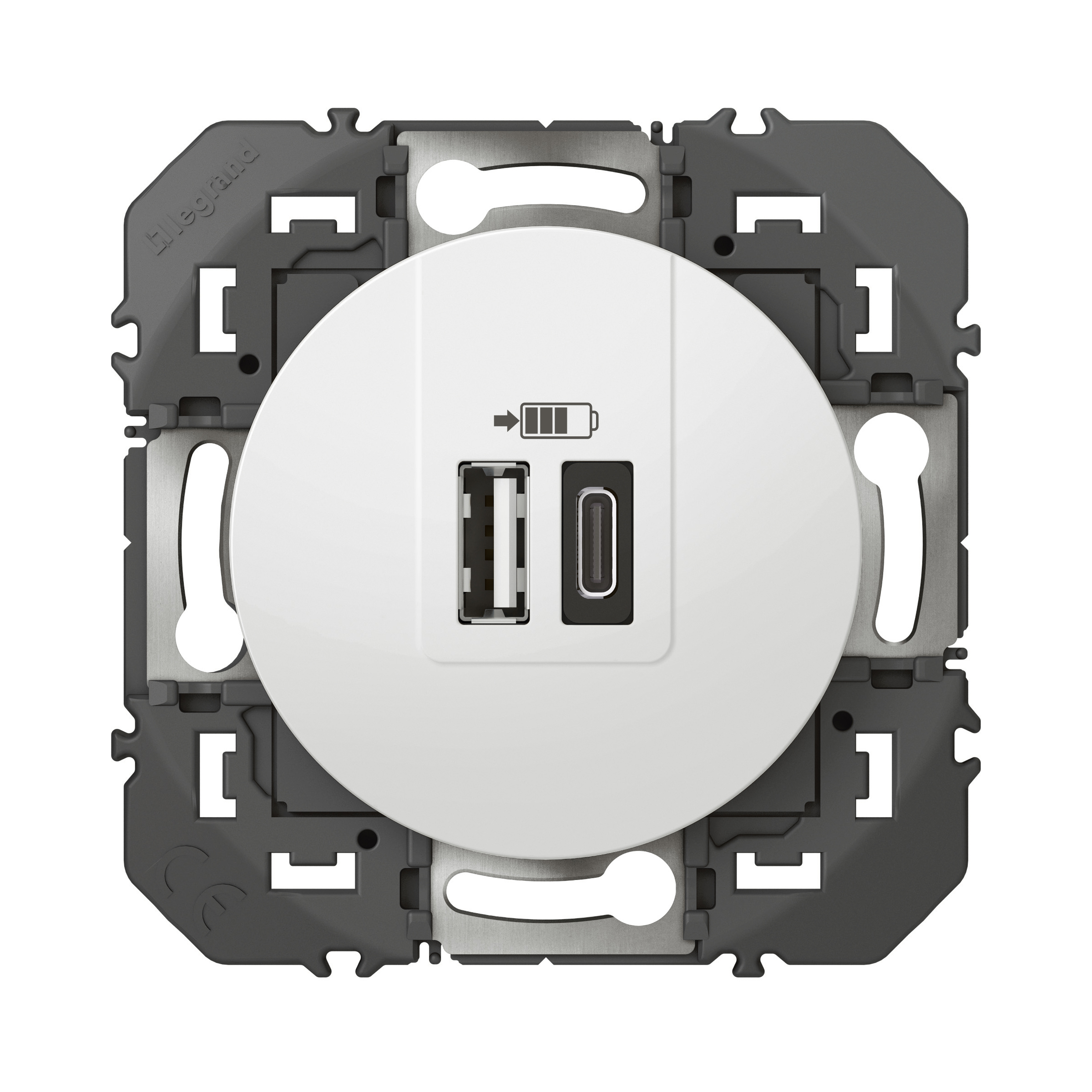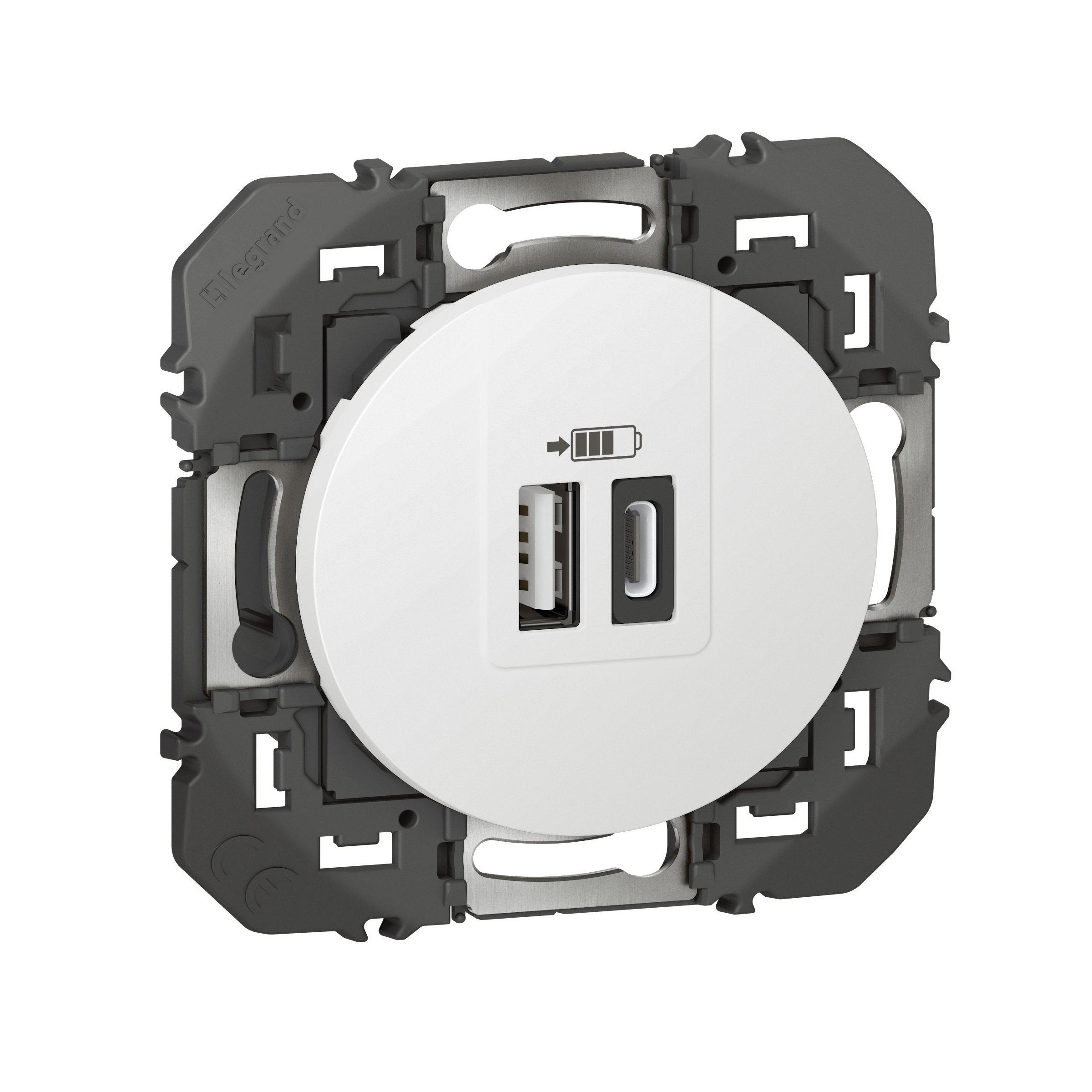 Prise double USB Type-A + Type-C dooxie 3A 15W finition blanc, à équiper d'une plaque de finition - emballage blister