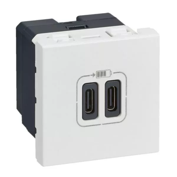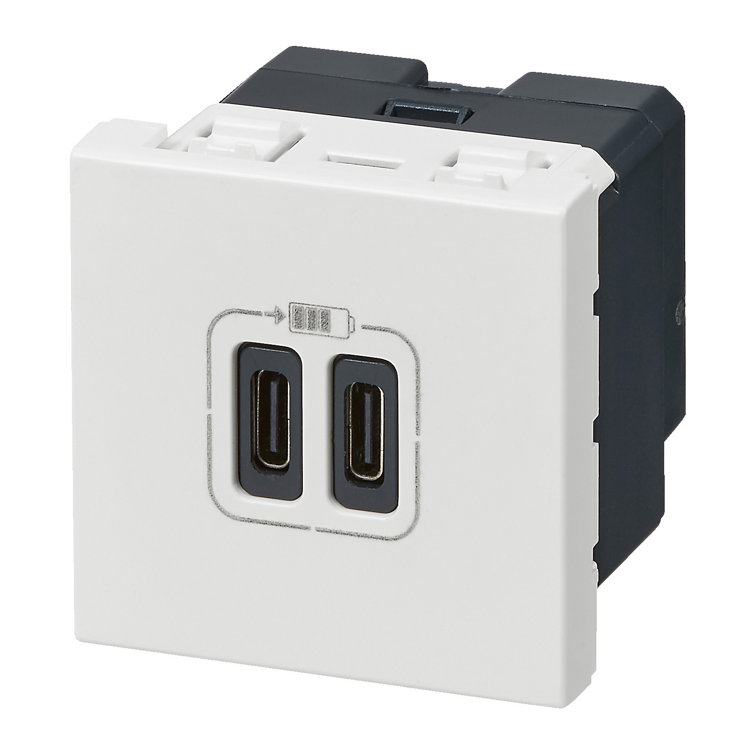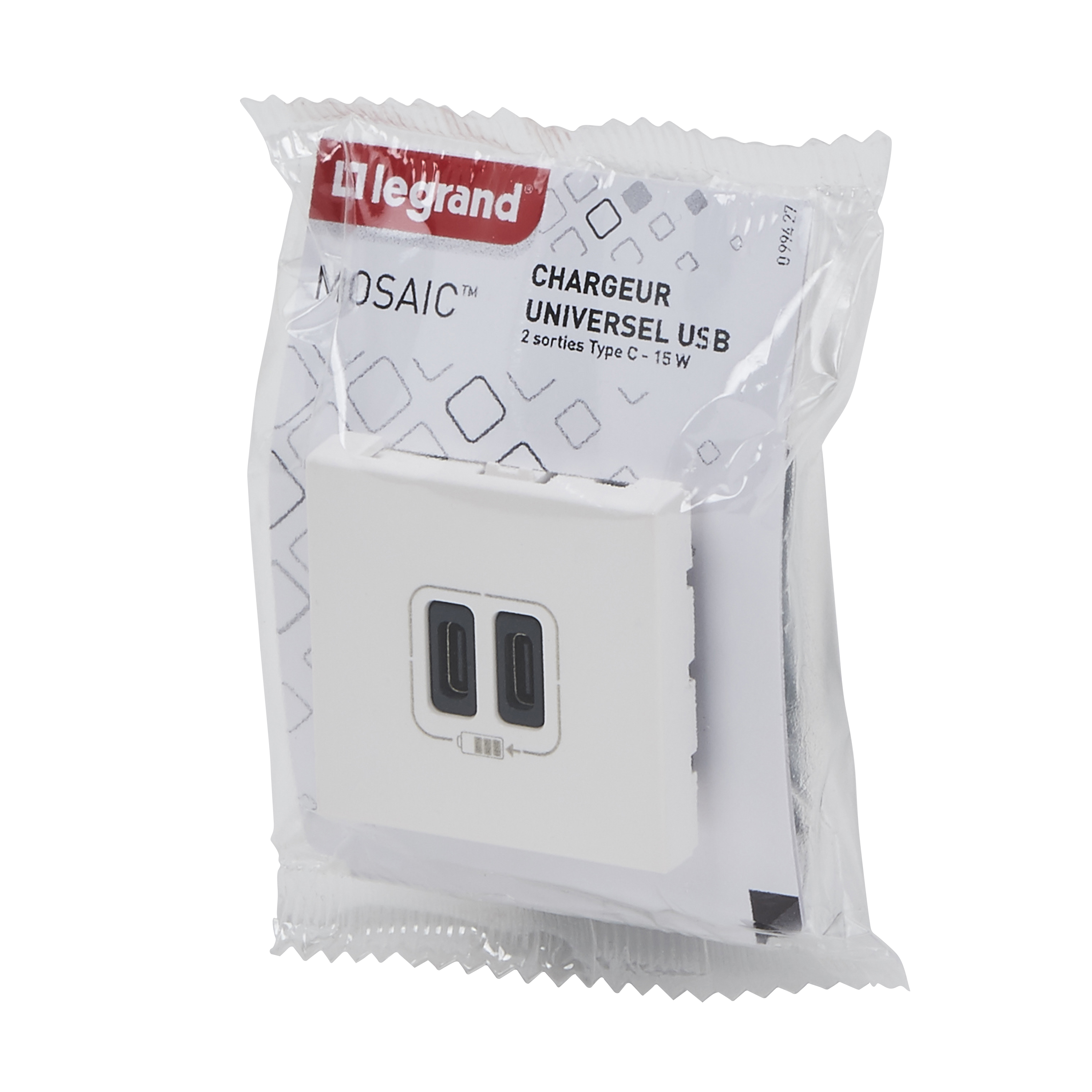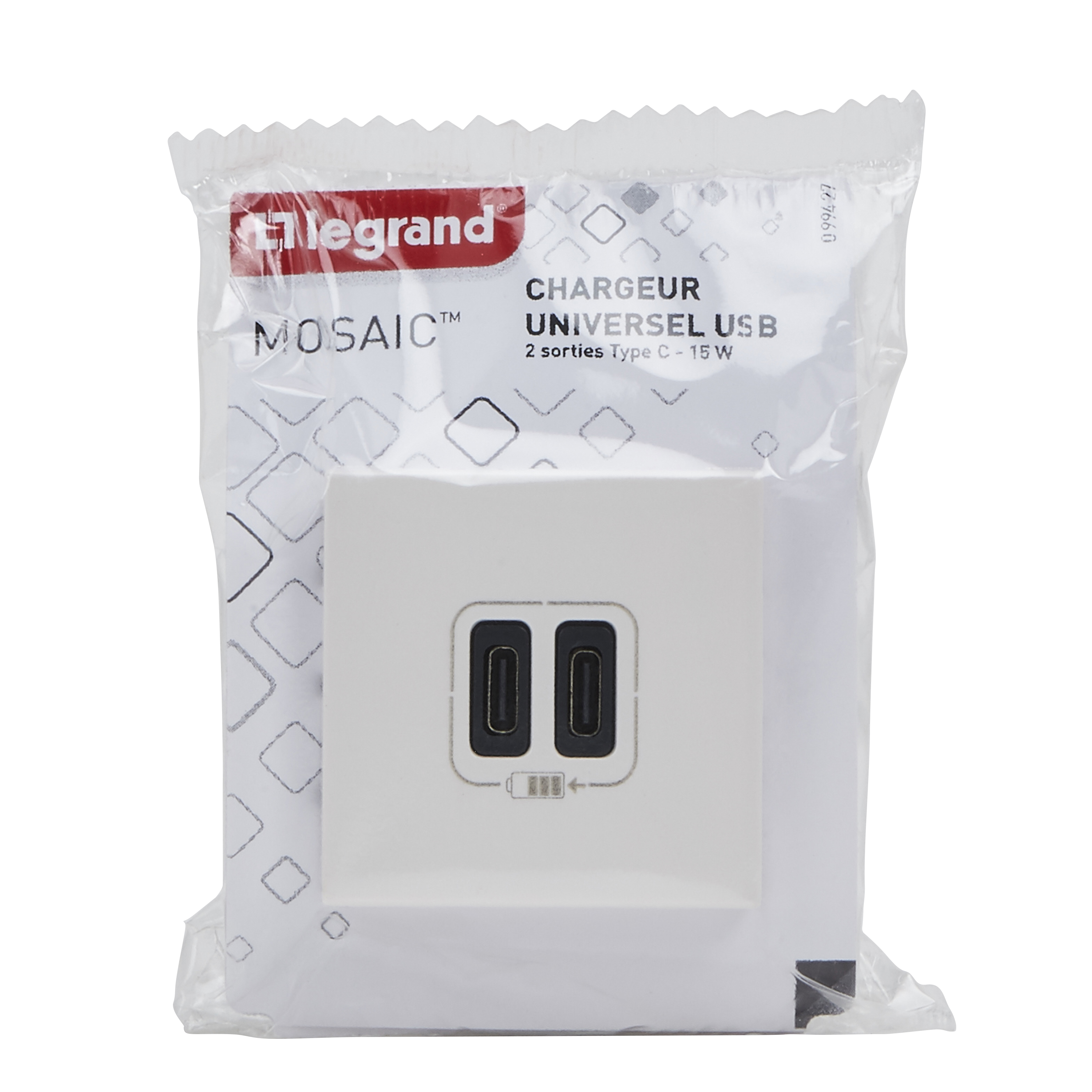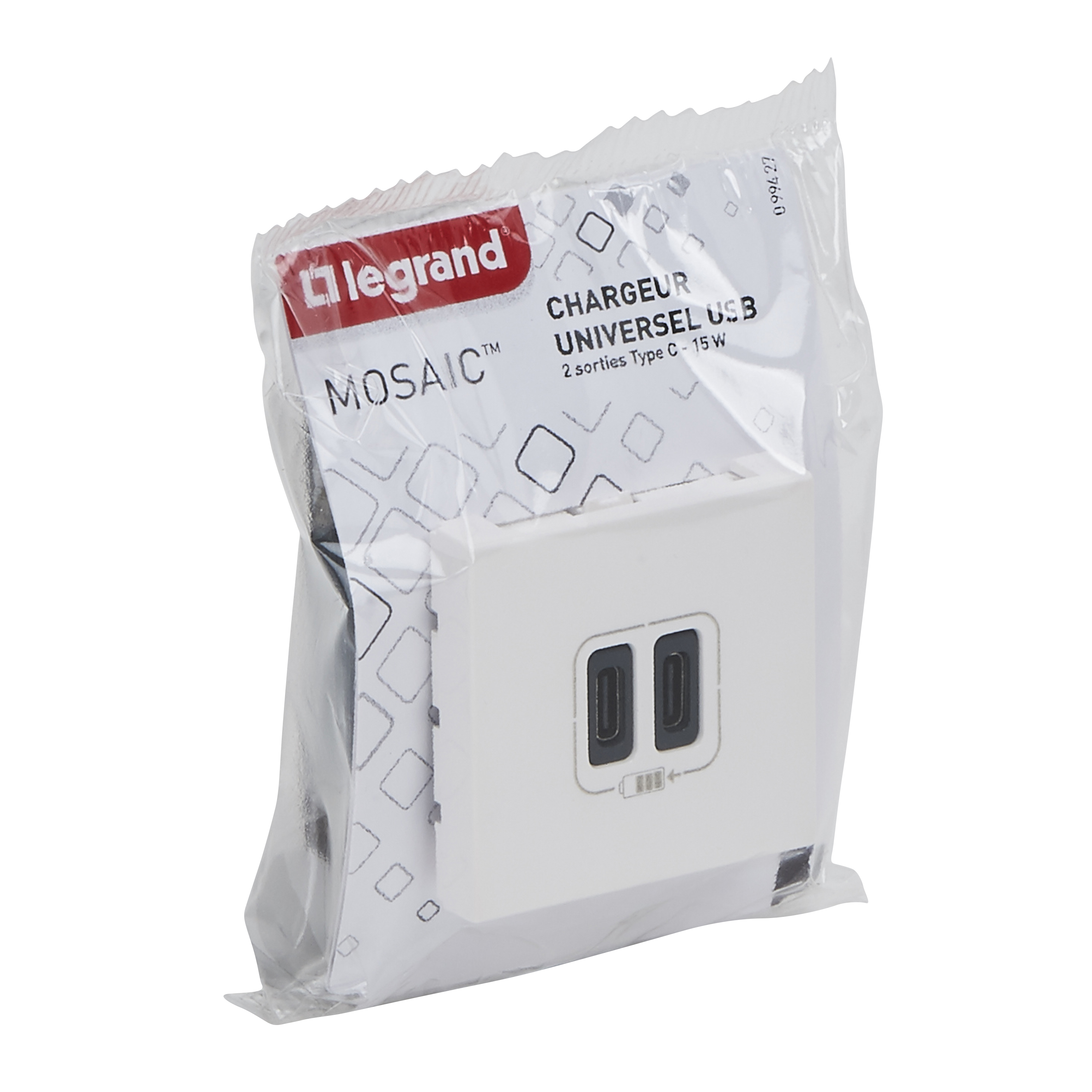 Prise double USB Type-C Mosaic 3A 15W 2 modules - blanc