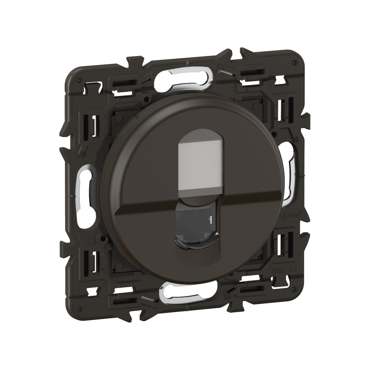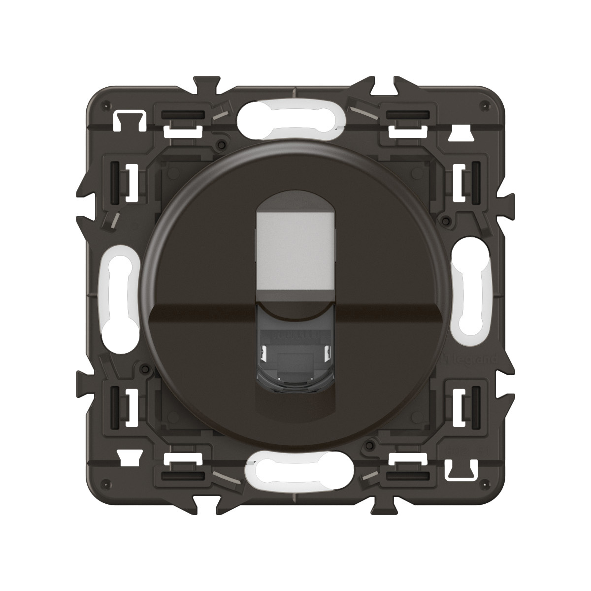 Prise RJ45 Céliane vendue avec support, prête à installer, à associer à des plaques Céliane avec une sélection de couleurs et de matières qui répond à tous les styles