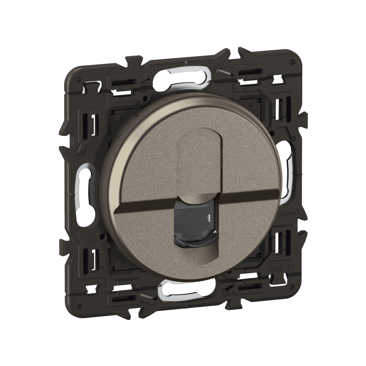 Prise RJ45 blindée multimédia catégorie6 STP télévision, téléphone, informatique Céliane- Titanium avec support à équiper d'une plaque