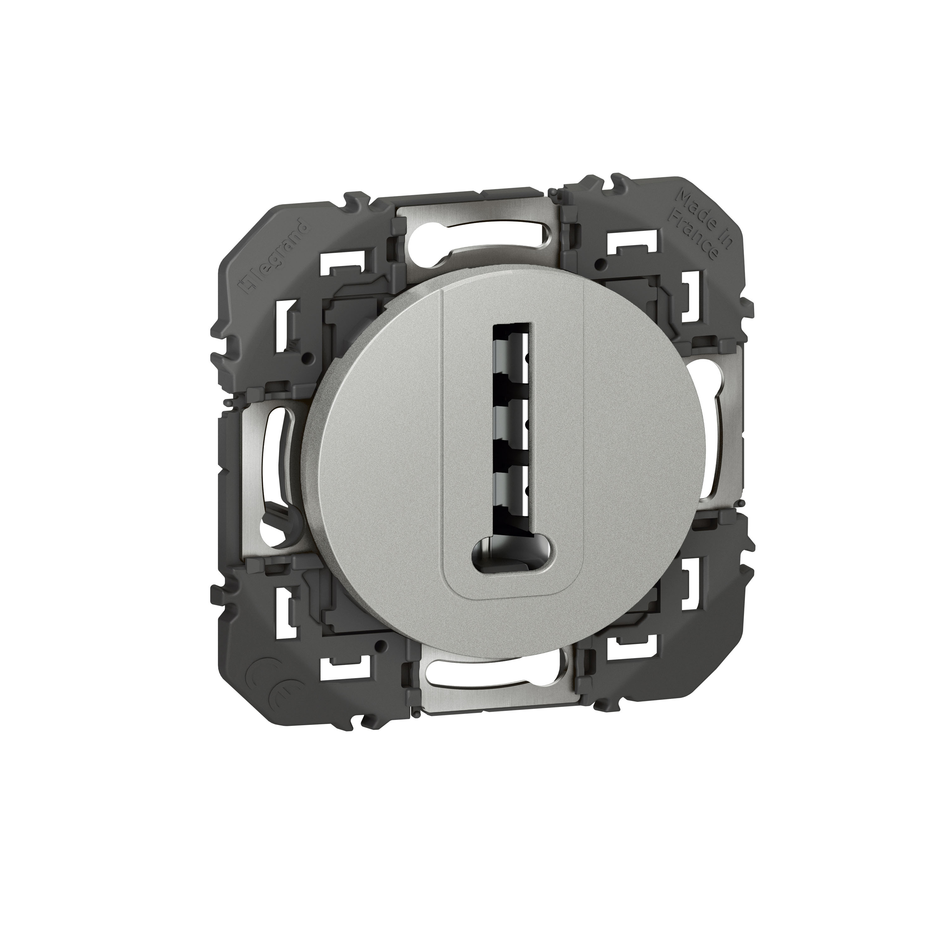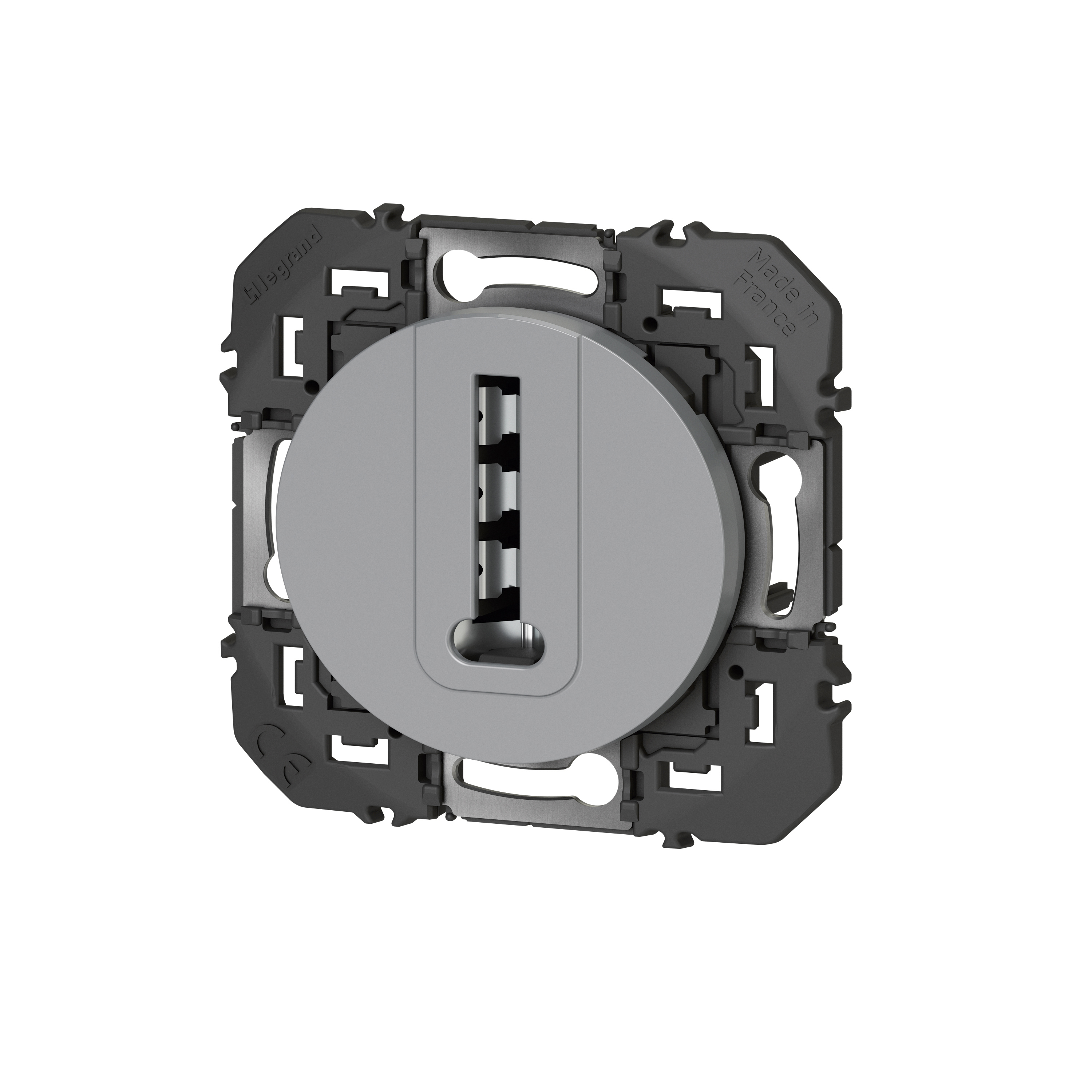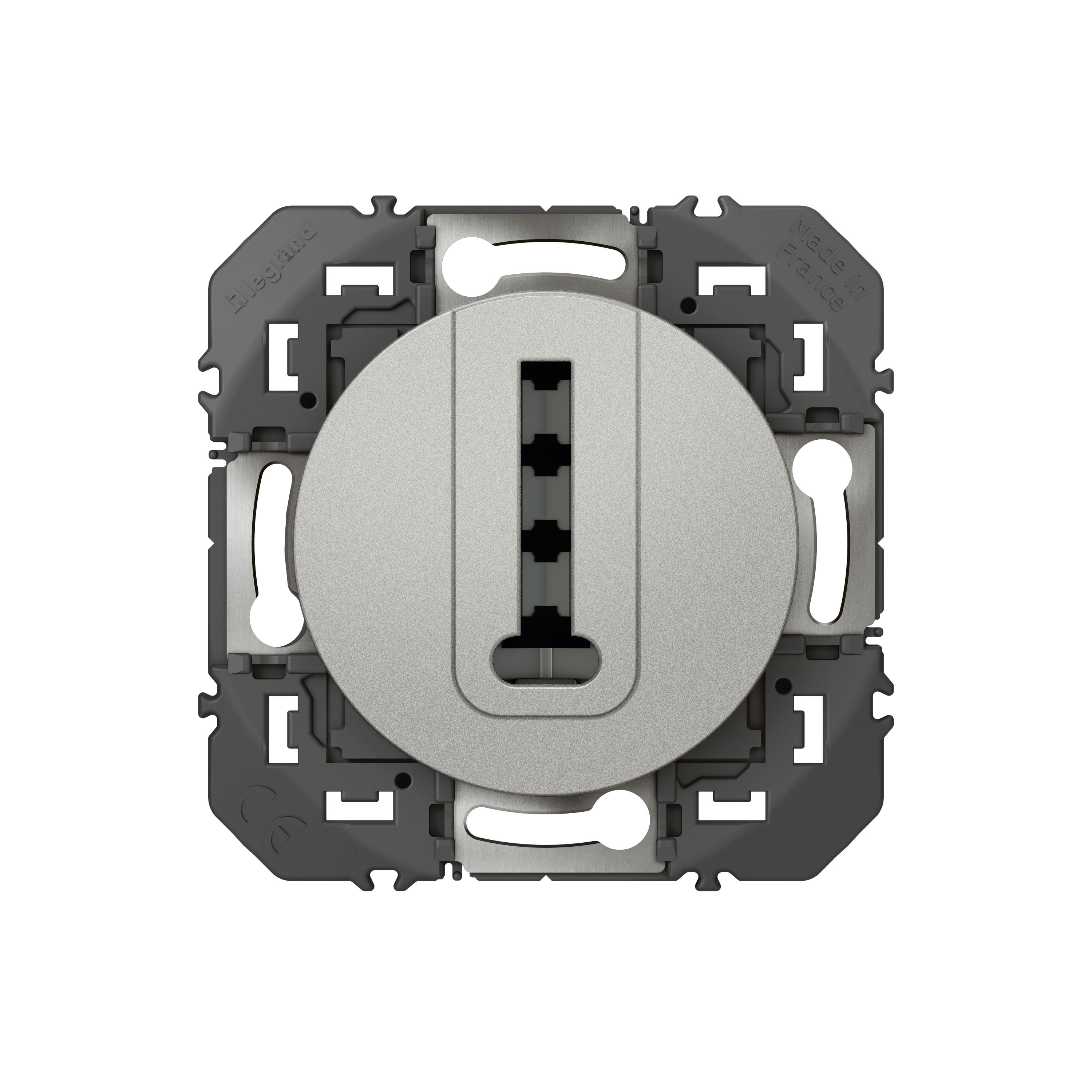 dooxie, une prise téléphone, équipée d'un support et à compléter d'une plaque, avec un design simple et moderne dans l'air du temps