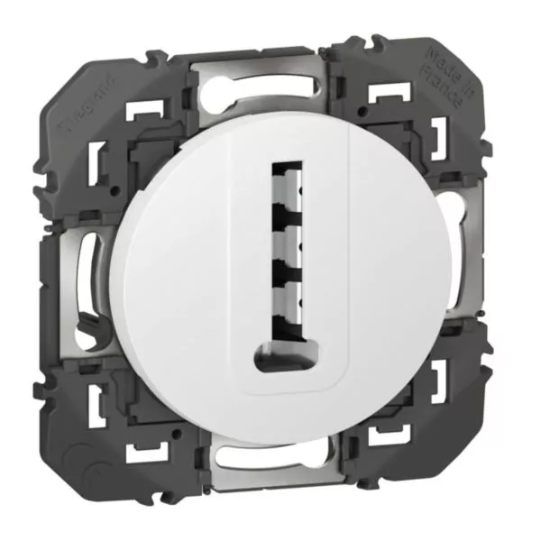 dooxie, une prise téléphone, équipée d'un support et à compléter d'une plaque, avec un design simple et moderne dans l'air du temps