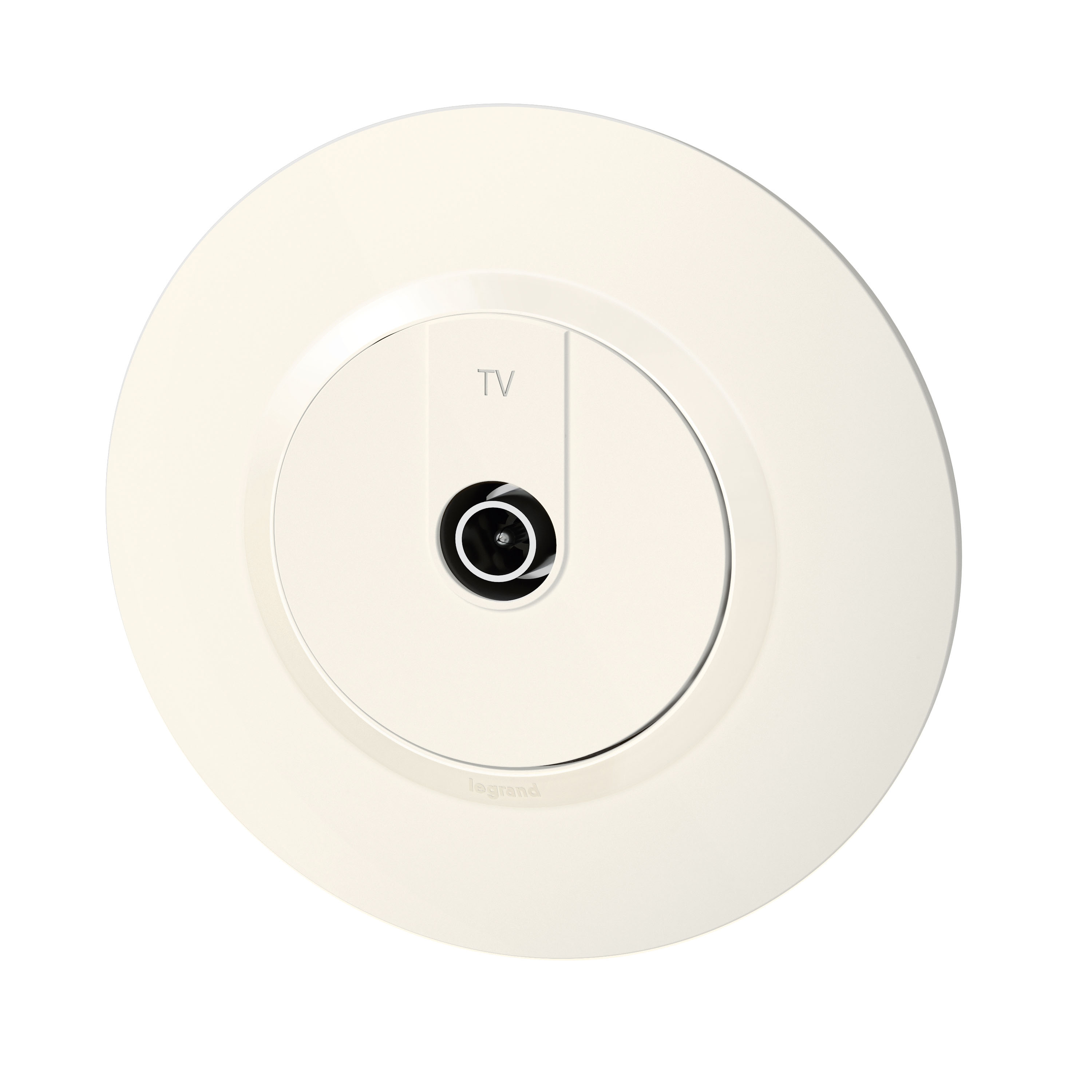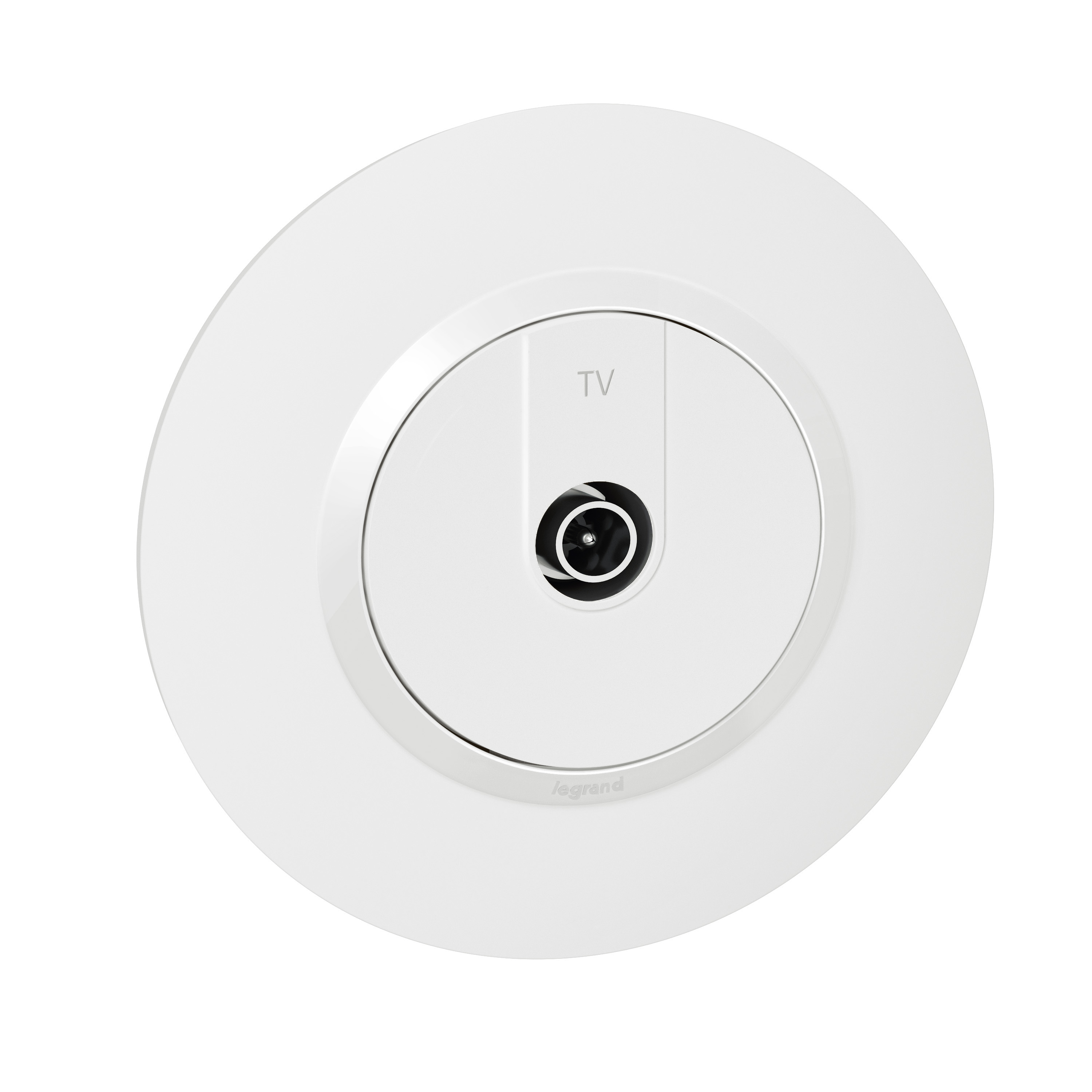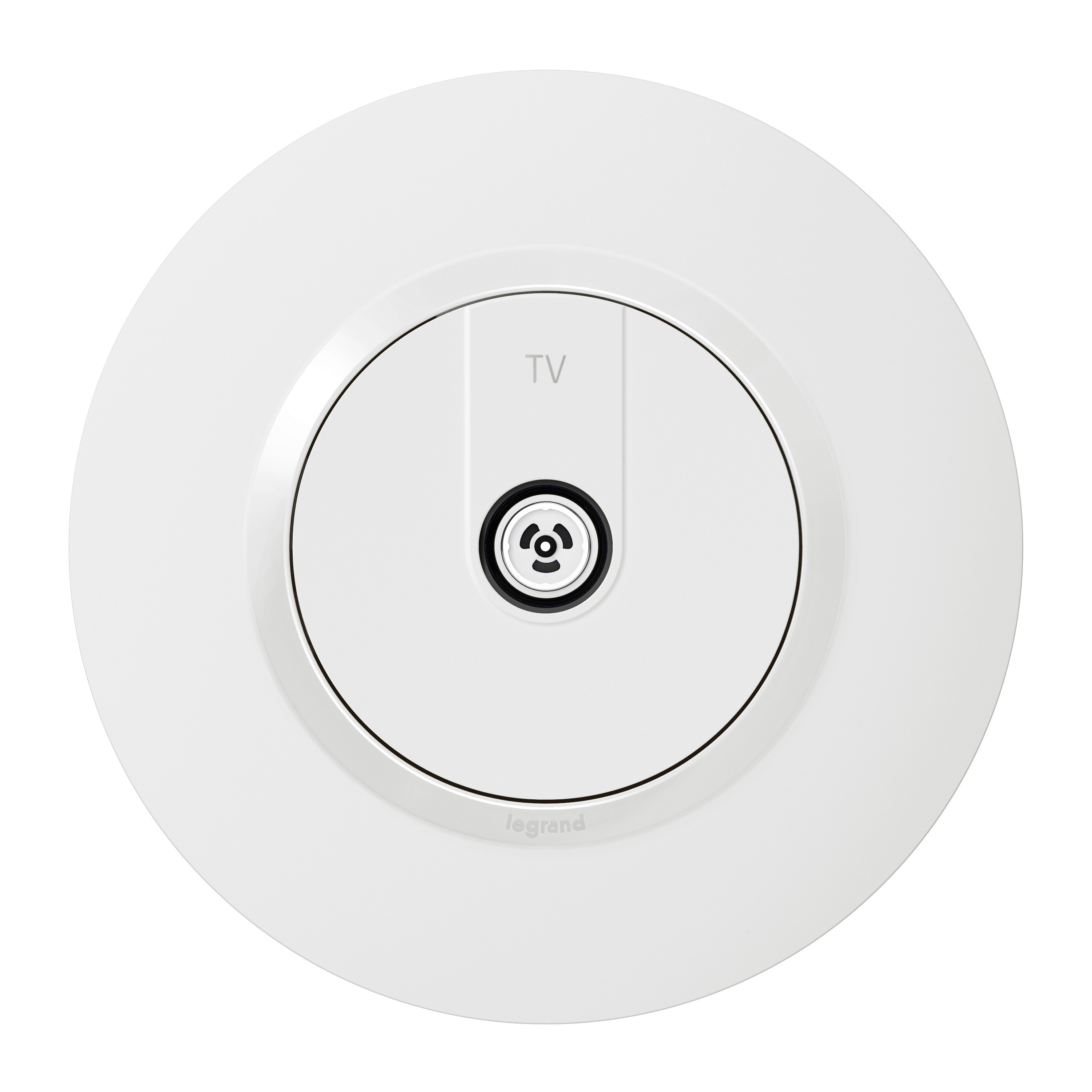 Prise TV étoile blindée dooxie livrée avec plaque ronde blanche et griffes - emballage blister