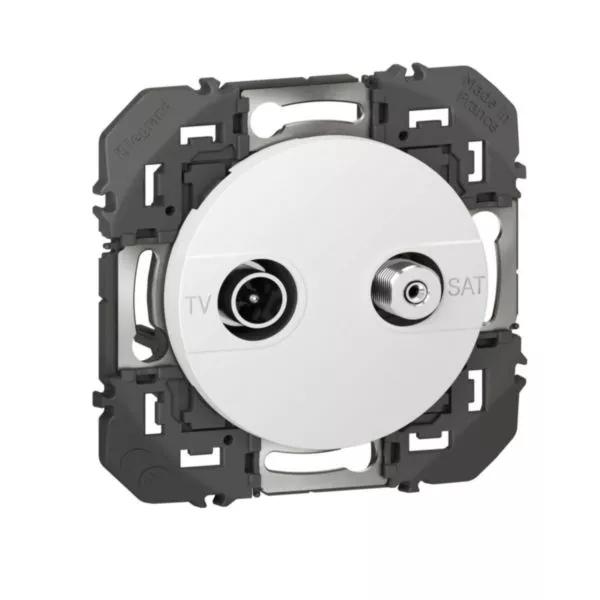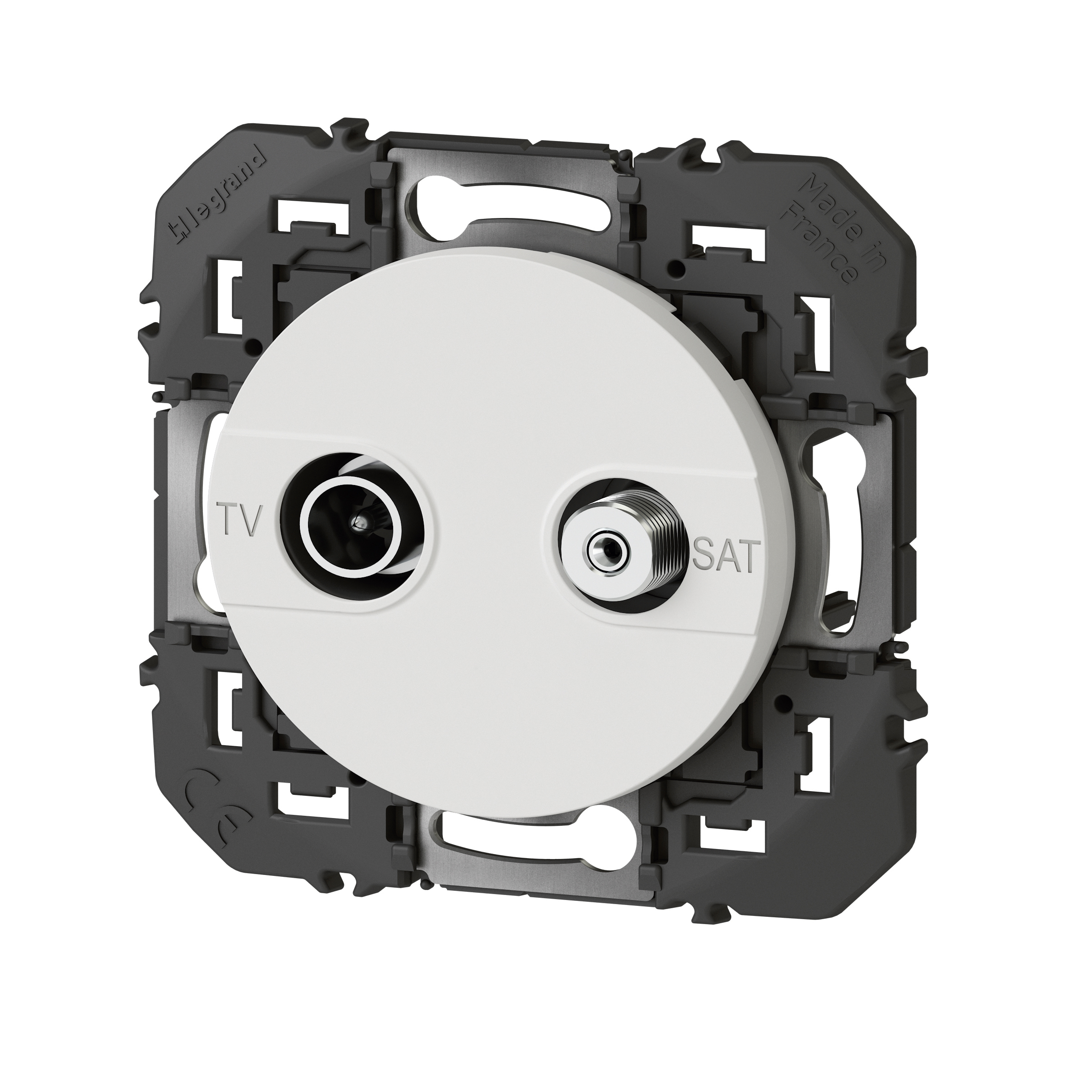 dooxie, une prise télévision, équipée d'un support et à compléter d'une plaque, avec un design simple et moderne dans l'air du temps