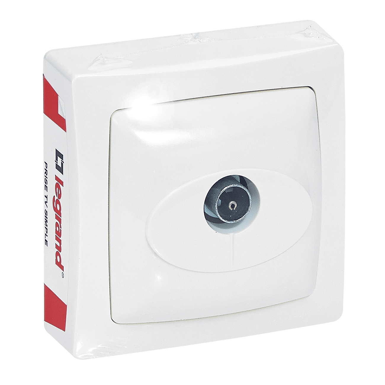 Appareillage saillie, idéal pour la rénovation pour une fixation en apparent, une prise télévision prête à installer directement sur un mur