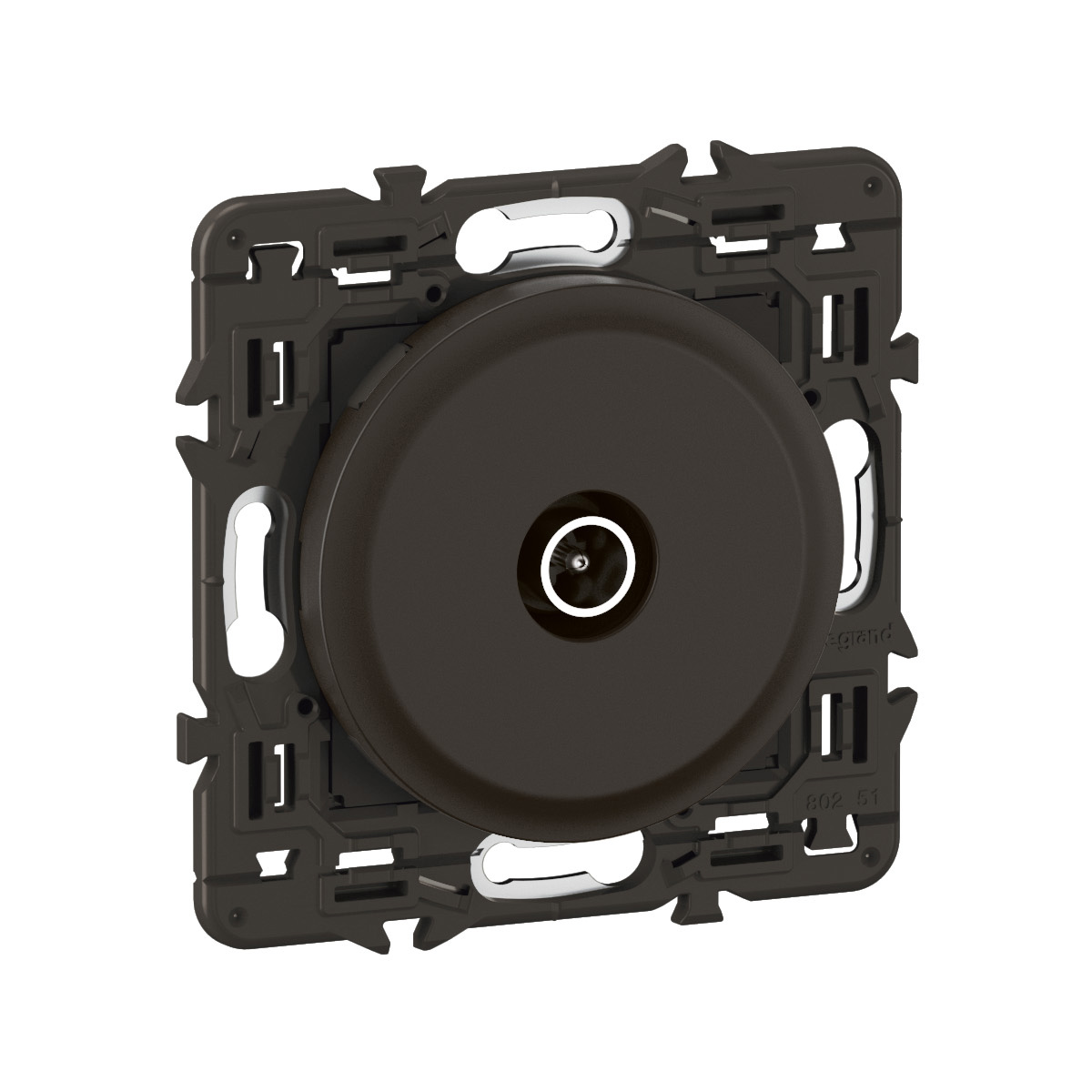 Prise télévision Céliane vendue avec support, prête à installer, à associer à des plaques Céliane avec une sélection de couleurs et de matières qui répond à tous les styles