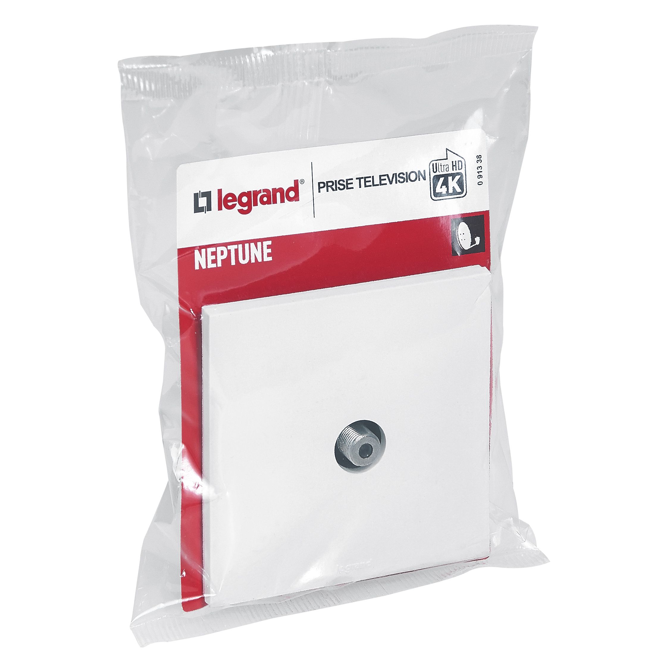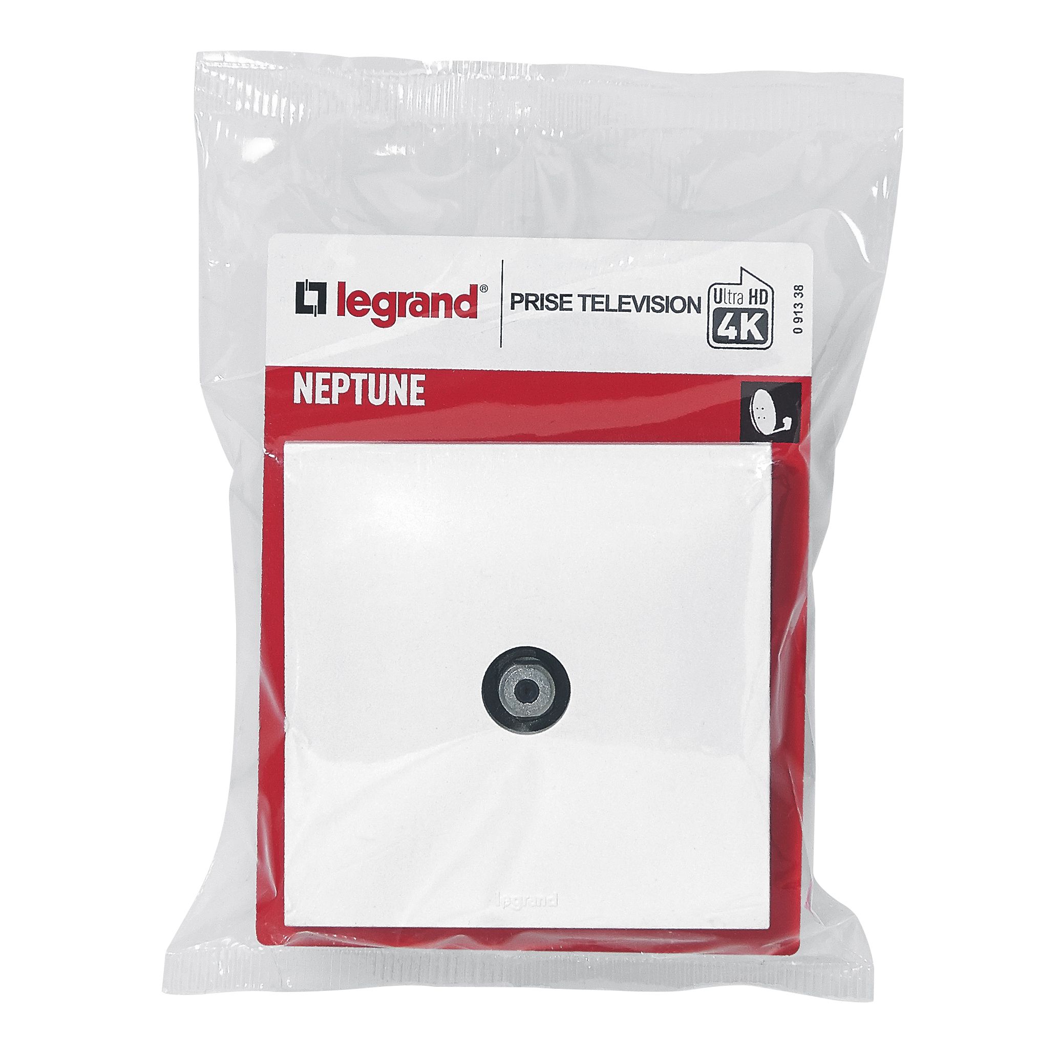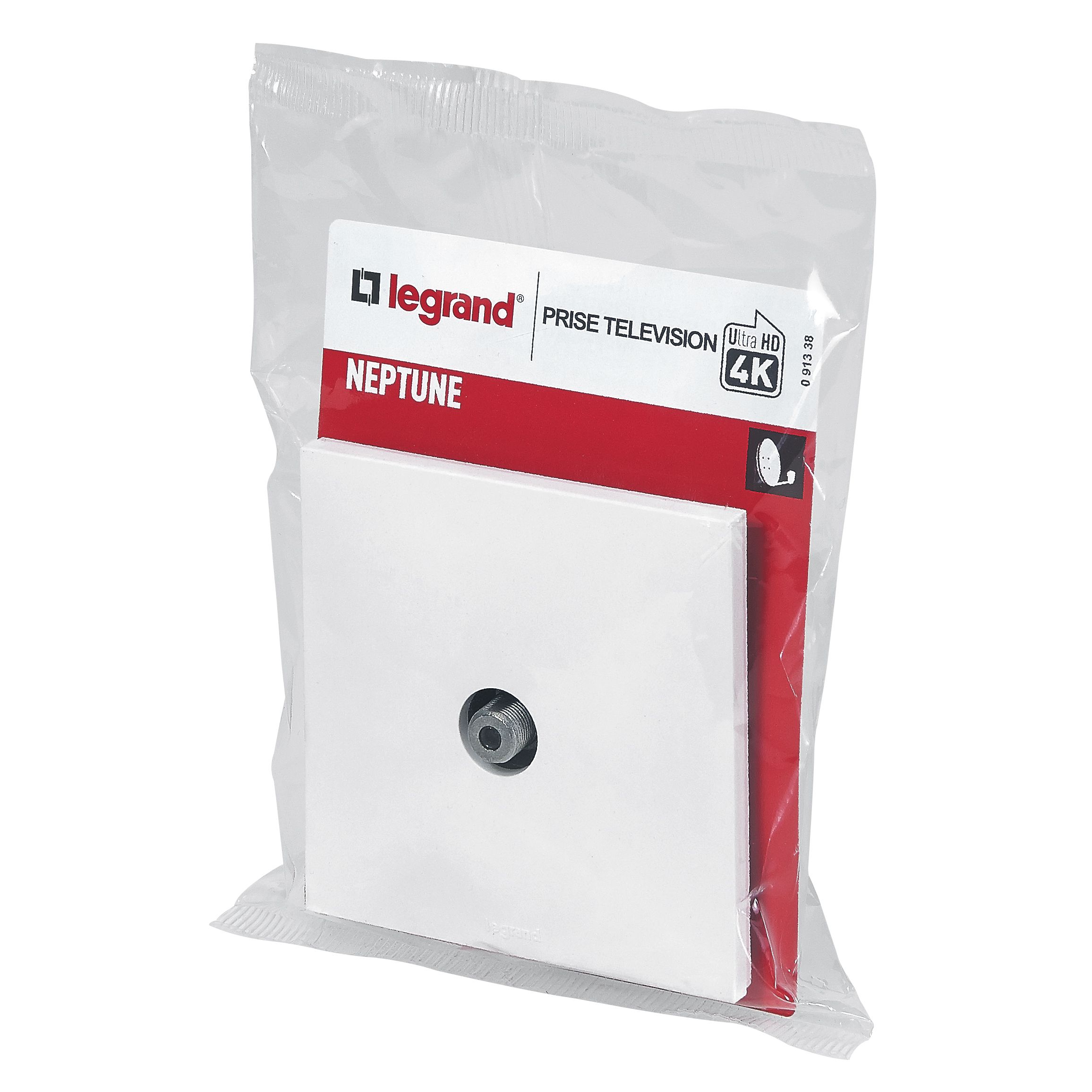 Neptune, une prise télévision monobloc, de couleur blanche, prête à installer en encastré, un appareillage simple et robuste qui s'adapte à tous les projets en rénovation ou en neuf