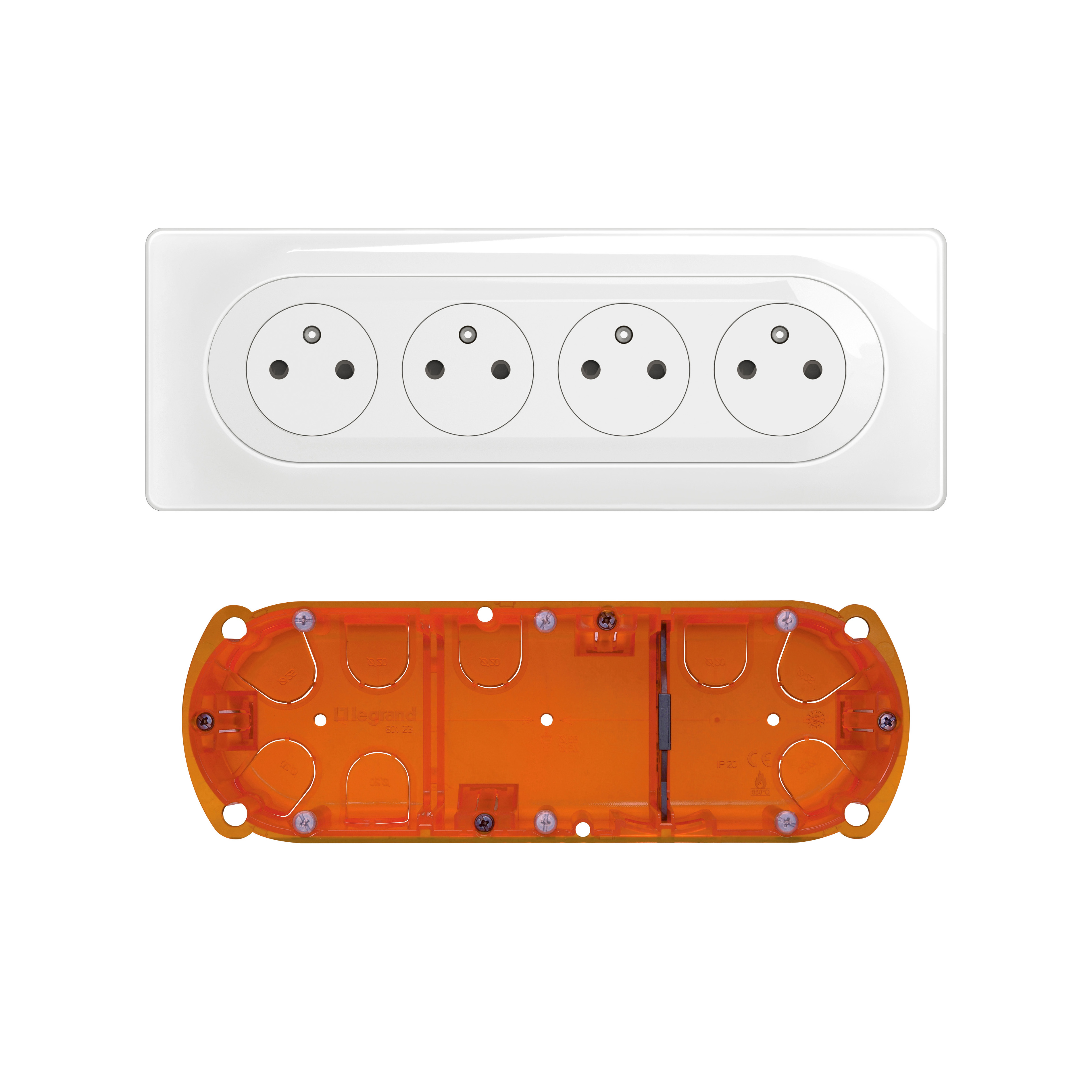 - Finition Blanc avec plaque spéciale pour quadruple prise compacte Blanc Emaillé
