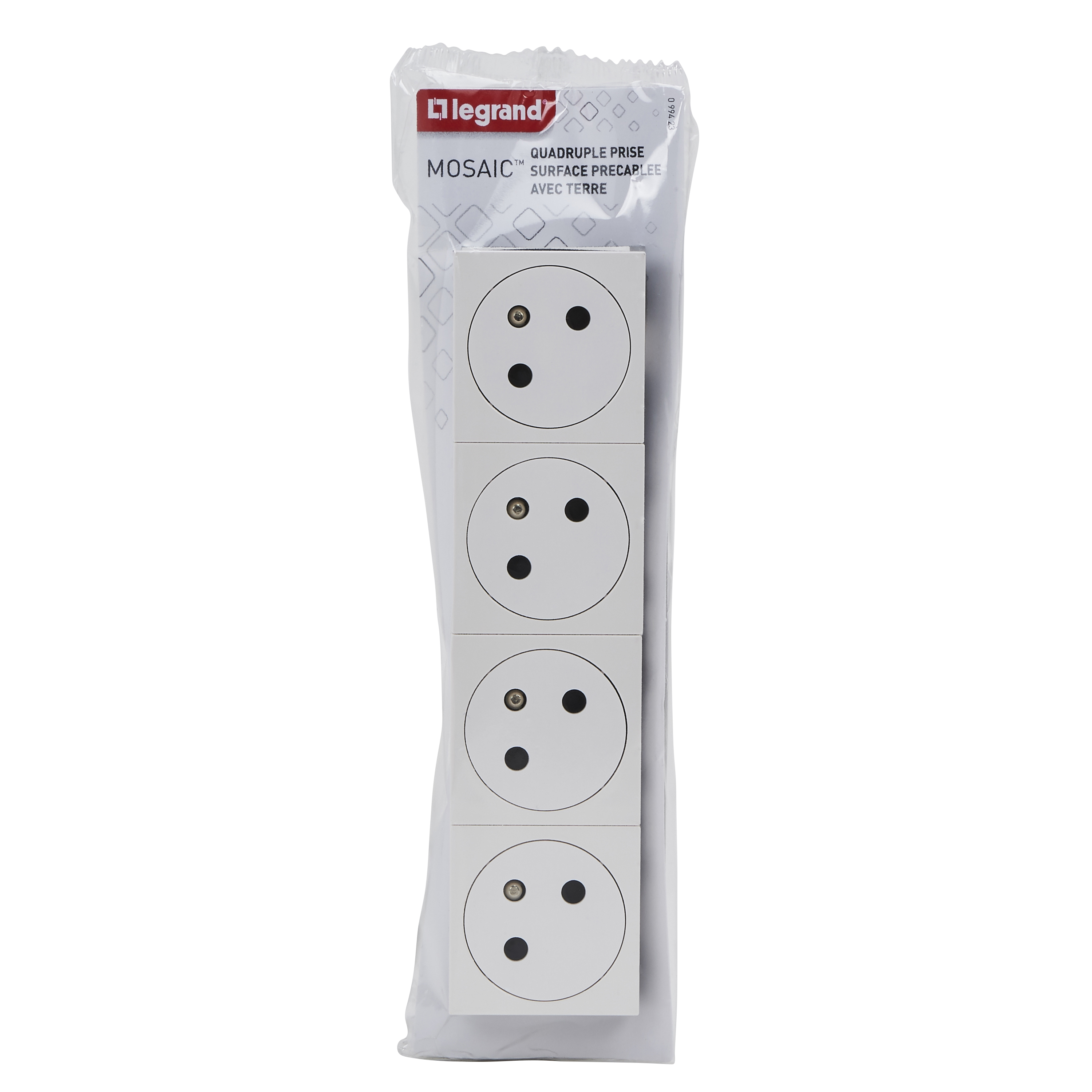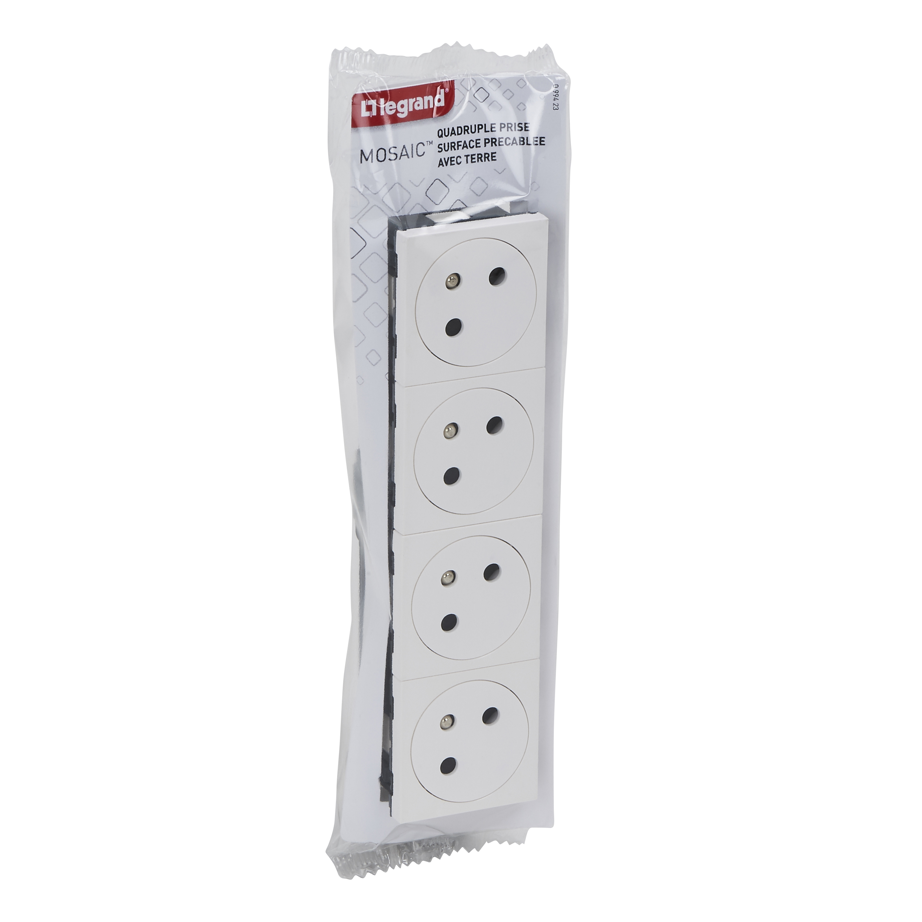 Quadruple prise de courant Surface Mosaic Link inclinée à 45° précâblée 8 modules - blanc