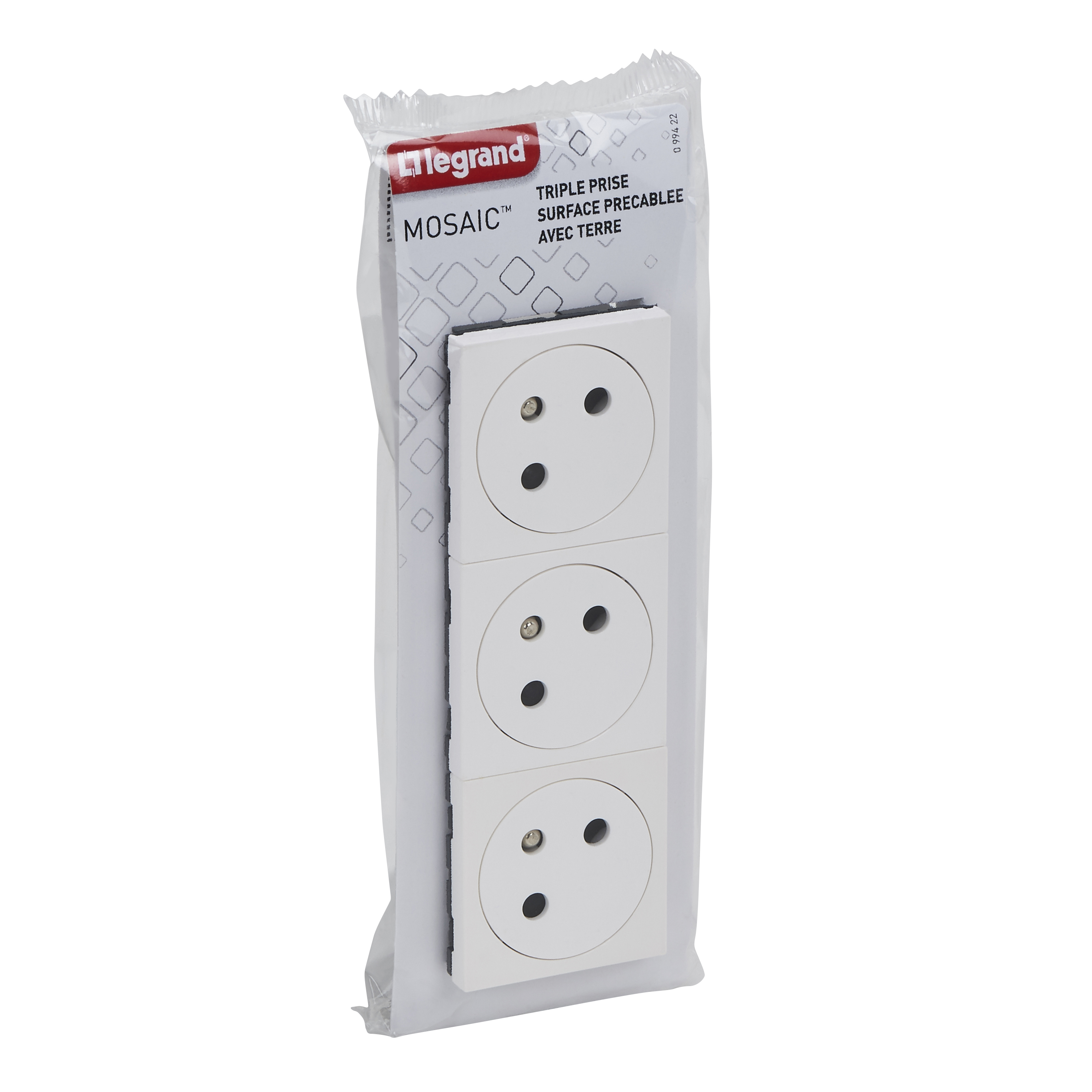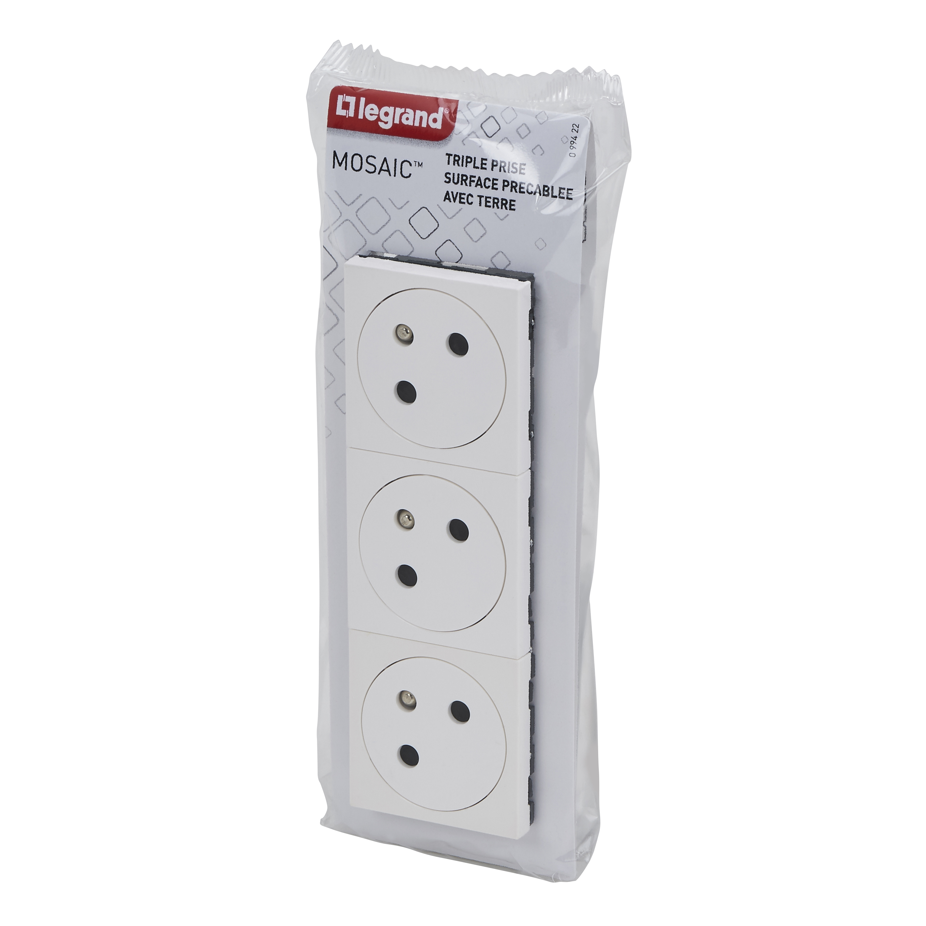 Triple prise de courant Surface Mosaic Link inclinée à 45° précâblée - blanc