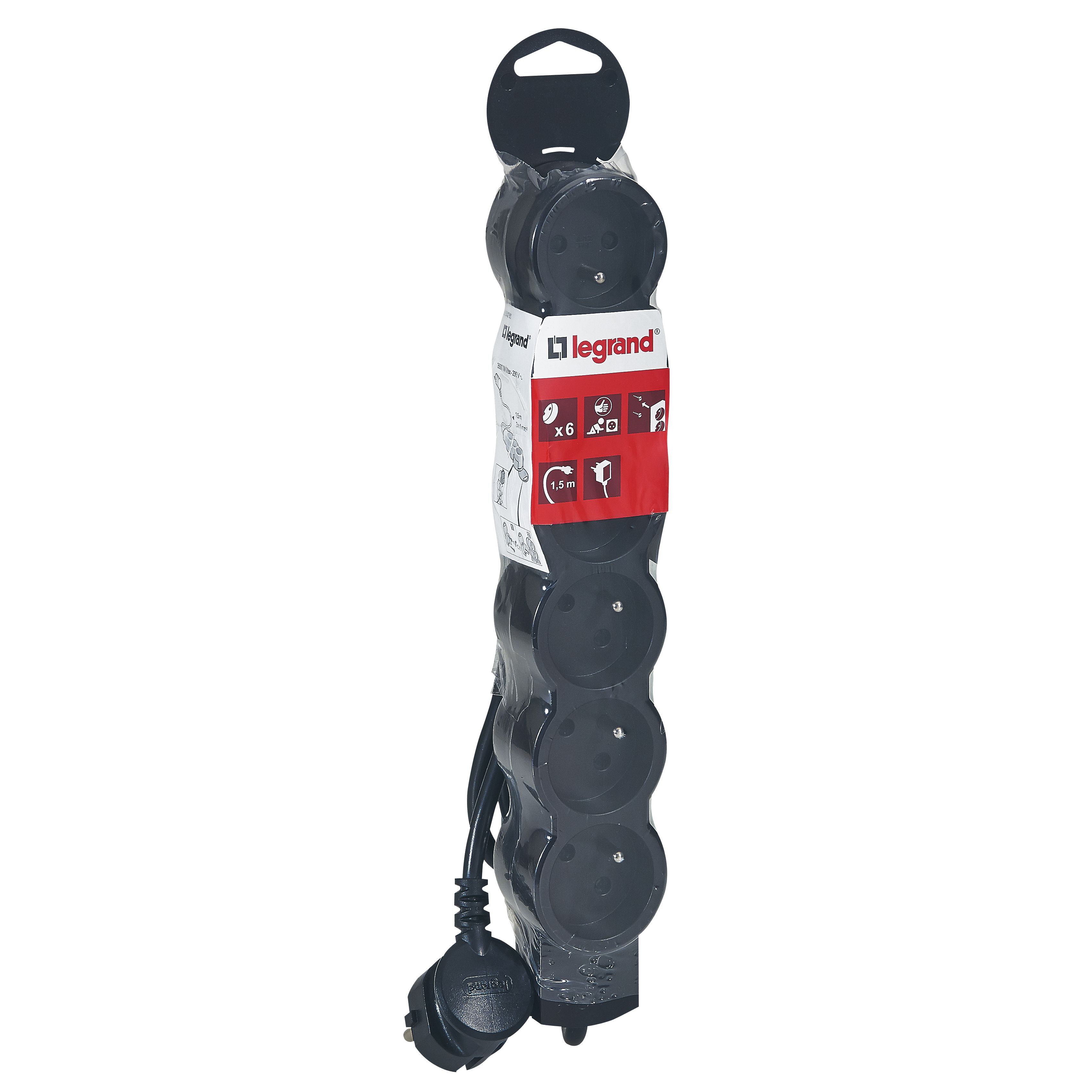 Rallonge 6 prises de courant - avec cordon 1,5m - Noir LEGRAND | REF. 0 494 86 Voir la fiche produit