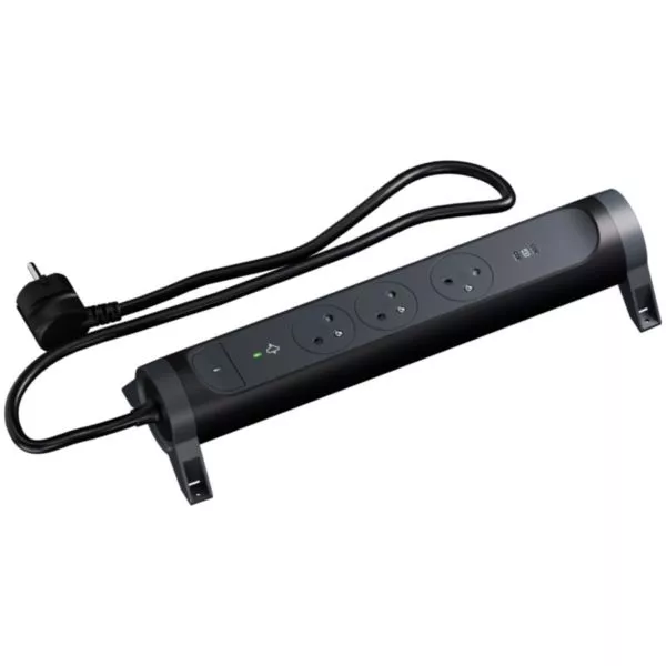 - La multiprise est équipée de prises surfaces garantissant un produit esthétique et empêchant la saleté de pénétrer dans les prises.