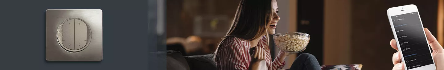 L’utilisation de la commande sans fil 4 scénarios Céliane with Netatmo est indissociable de l'interface de contrôle, l’application Home + Control. Vous pouvez personnaliser les 4 touches facilement selon vos habitudes de vie.
