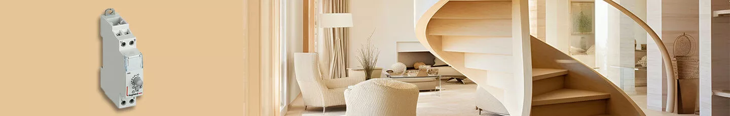 - l'ensemble des poussoirs actionnant la minuterie doivent être raccordés d'un côté à la borne B de la minuterie et de l'autre à la phase en sortie du disjoncteur associé