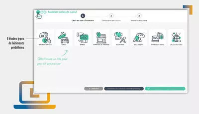 Vous retrouverez dans l’assistant les 8 typologies de bâtiments du tertiaire de proximité au travers de 8 études types à personnaliser.