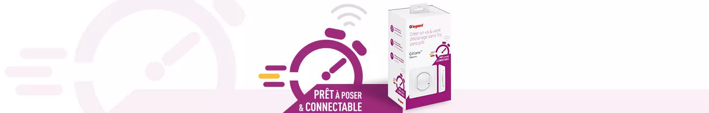 Très faciles à mettre en œuvre, les Prêts-à-Poser sans fils et sans pile Céliane préprogrammés entre eux vous permettent de gagner du temps sur vos chantiers de rénovation (également disponibles dans les gammes dooxie et Mosaic).