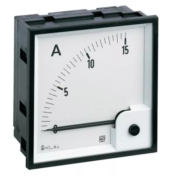 Ampèremètre analogique type DIN RQ72M 0-15ADC direct avec cadran déviation 90°