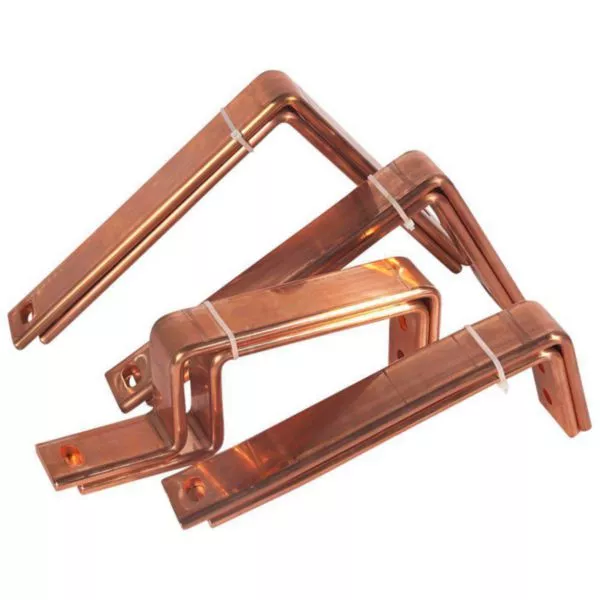 - Barres cuivre pliées et percées pour le raccordement aval des appareils sur jeu de barres aluminium horizontal de transfert, entraxe 75mm