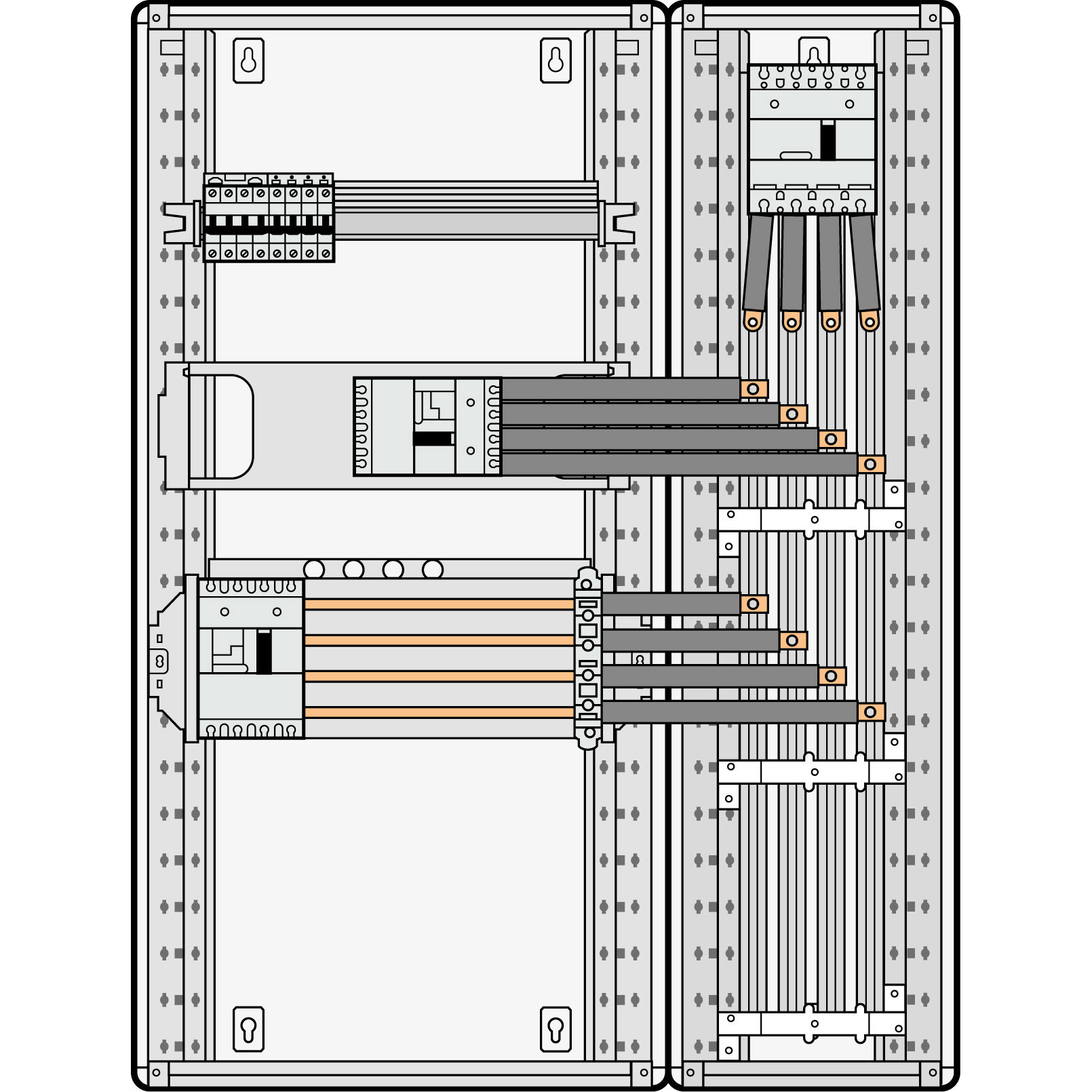 VX³, répartition verticale optimisée, kit de raccordement préfabriquée jusqu'à 400A pour montage dans armoires XL³400