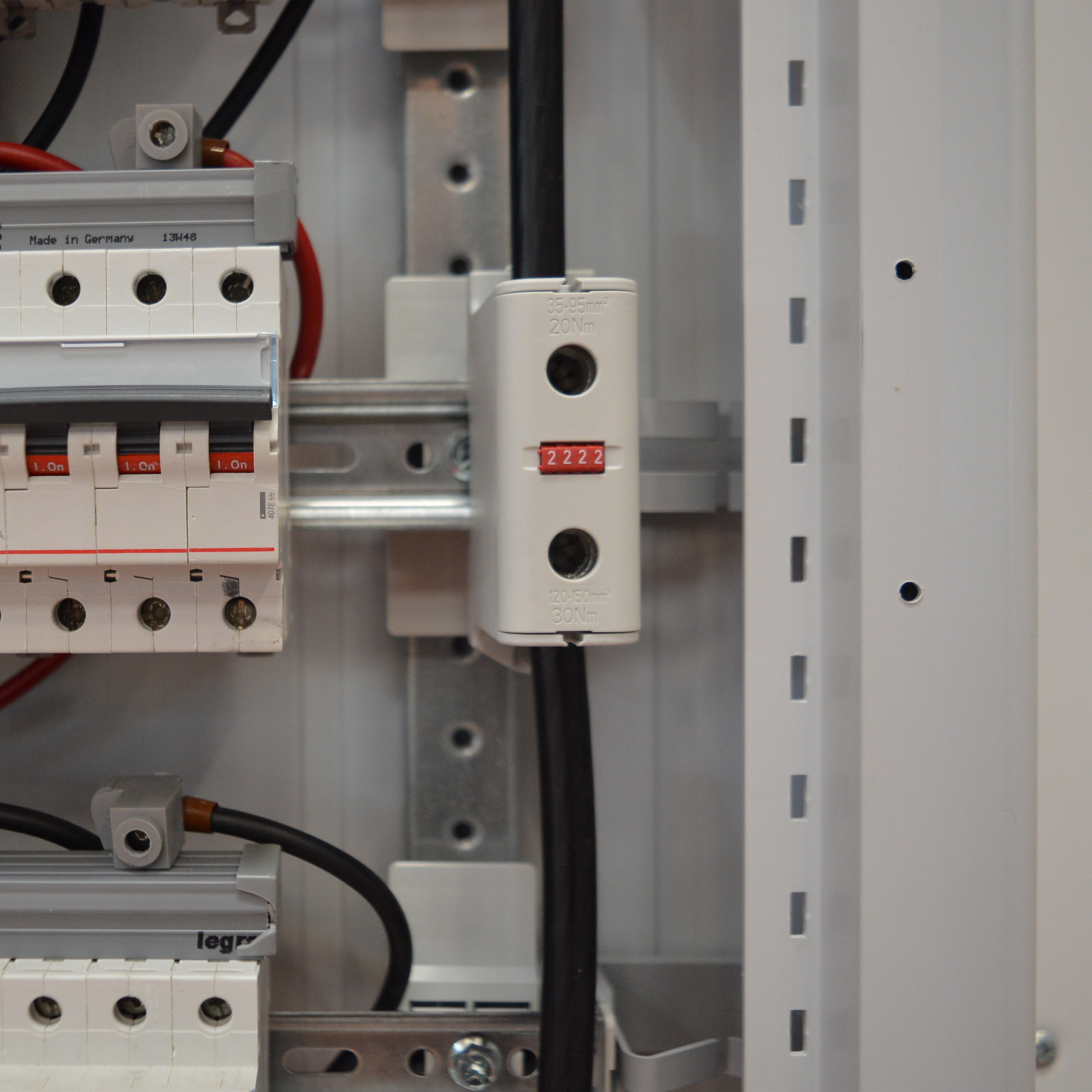 - Capacité de raccordement : câble Cuivre et Aluminium de 35 à 240 mm²
