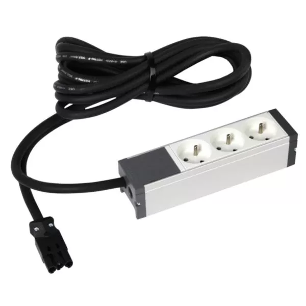 Bloc nourrice équipé de 3 prises 2P+T, muni d'un cordon à raccordement rapide avec connecteur mâle