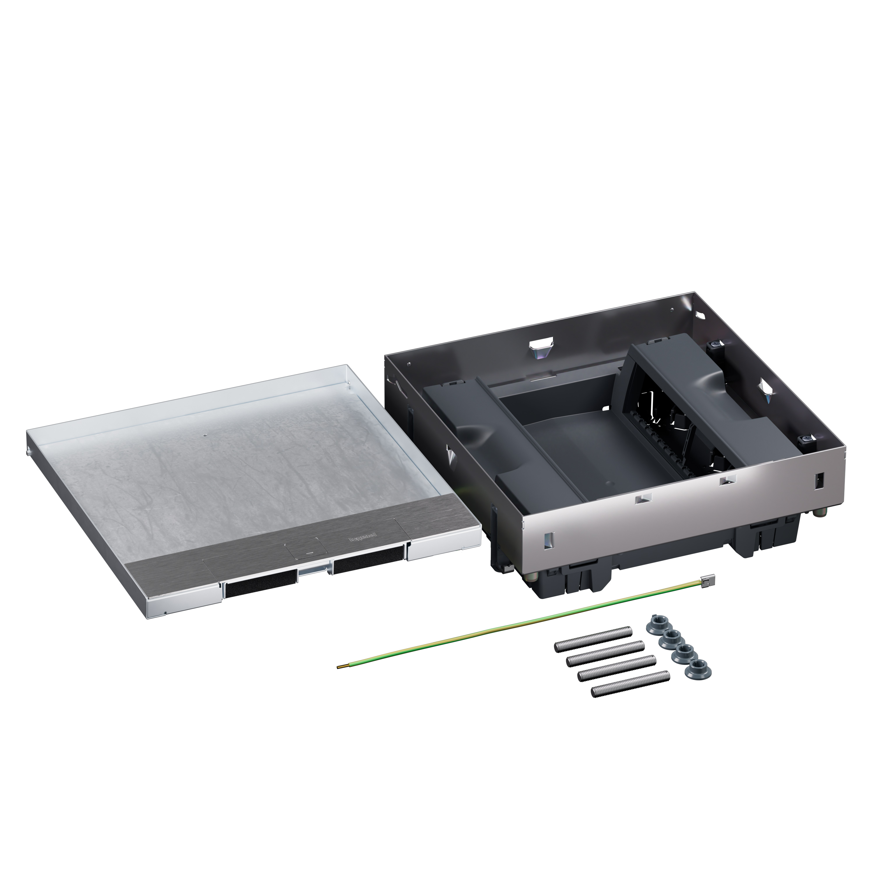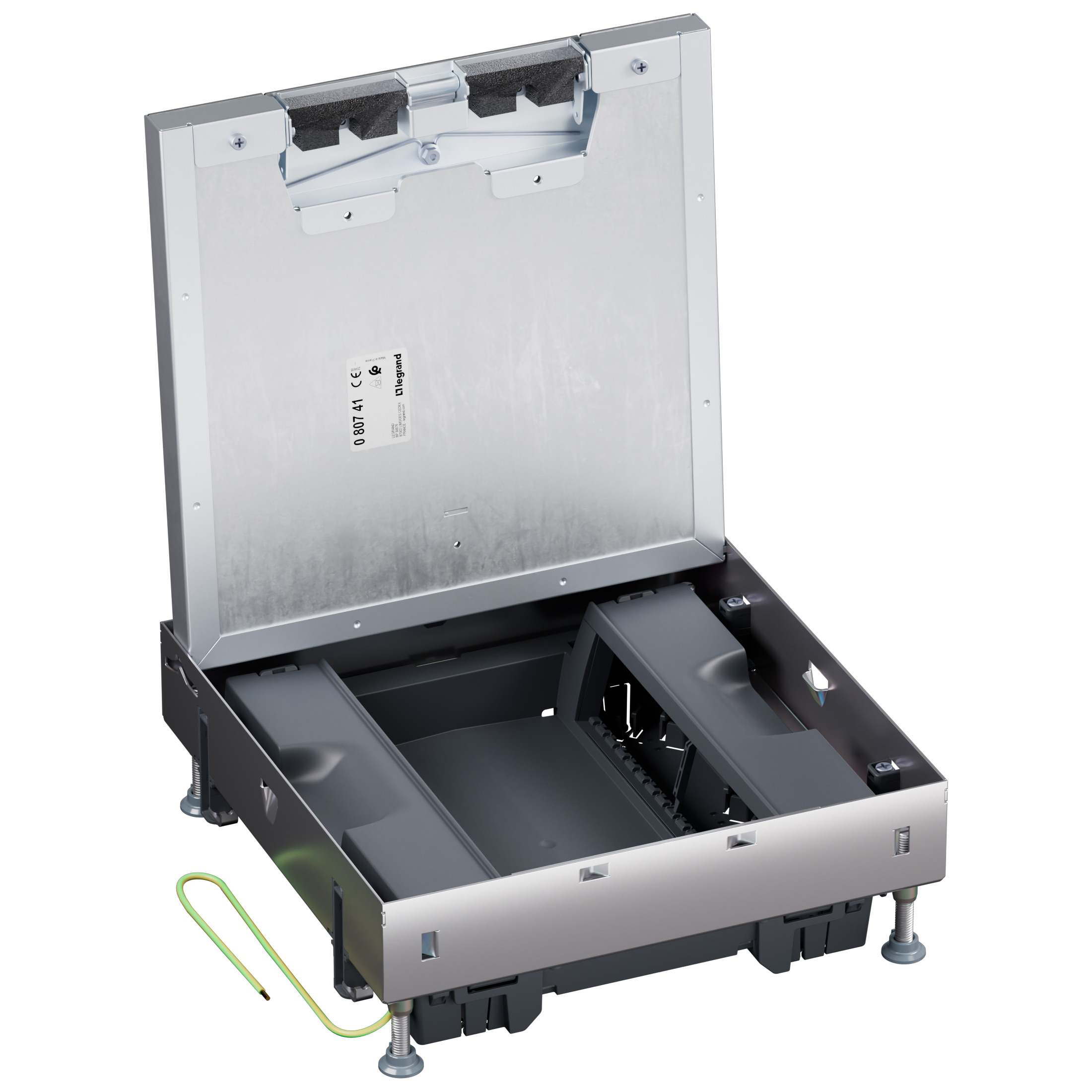 La boîte de sol permet l'accès et le raccordement des prises électriques, AV et VDI. Elle est composée de son cadre et de son couvercle
