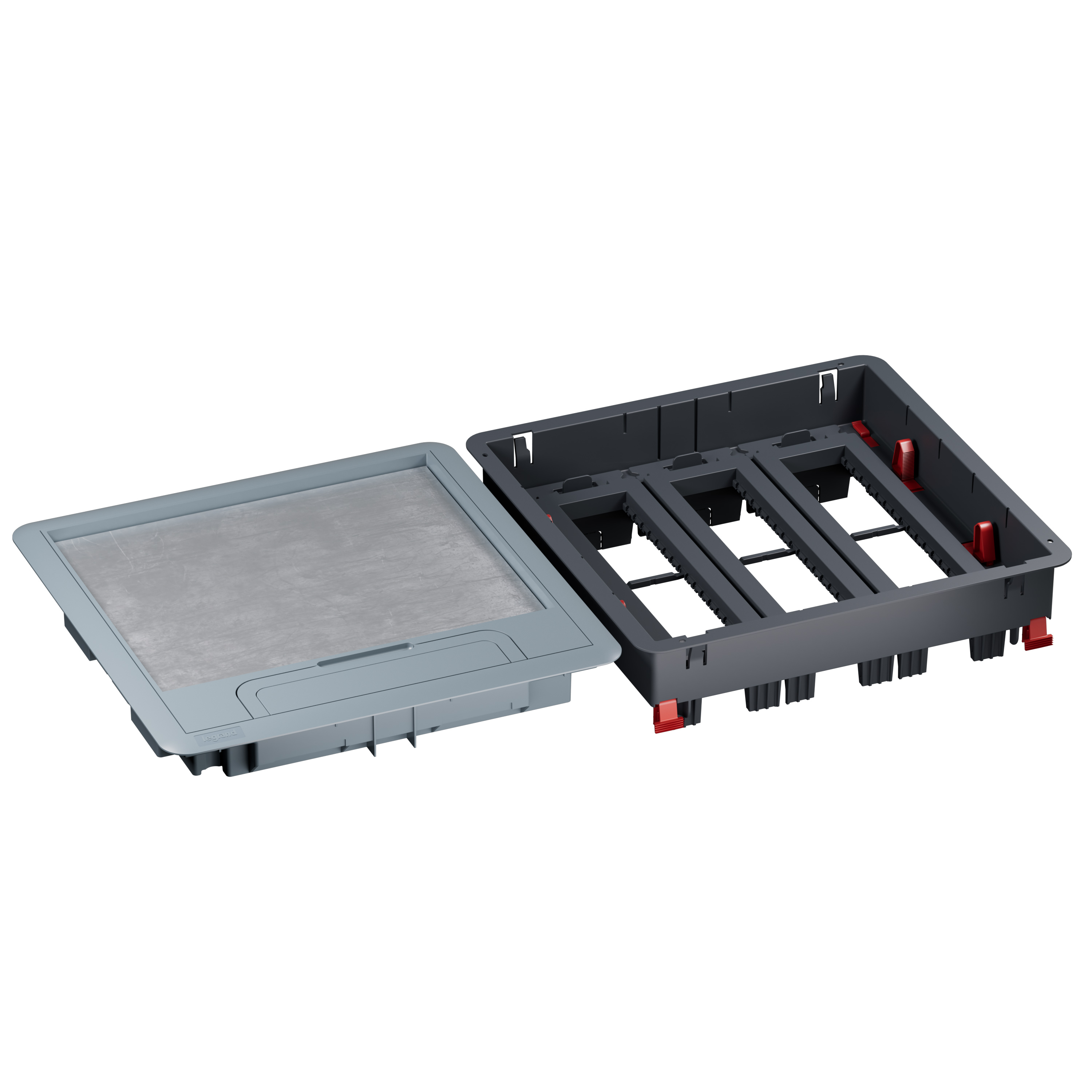 Boîte de sol Mosaic 24 modules horizontaux avec couvercle plastique - hauteur réglable 76-250mm, résistance 3000N