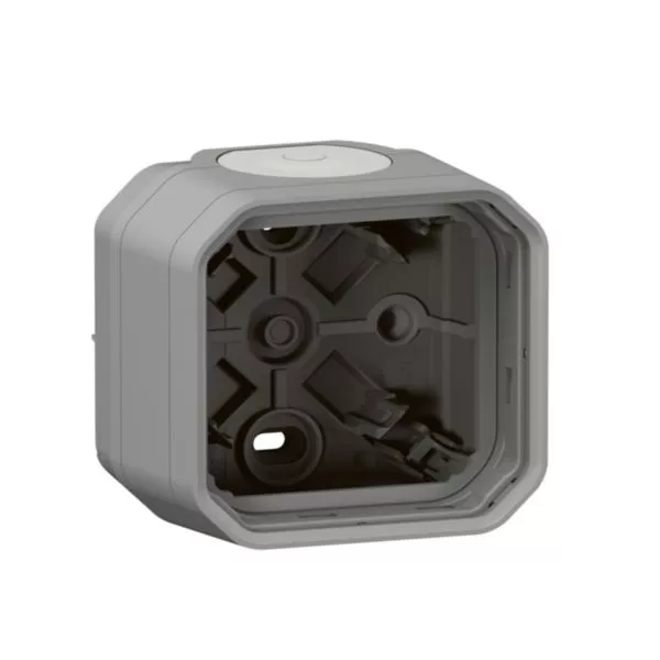 Boîtier saillie étanche Plexo 1 poste avec 2 embouts à membrane et 1 entrée - gris
