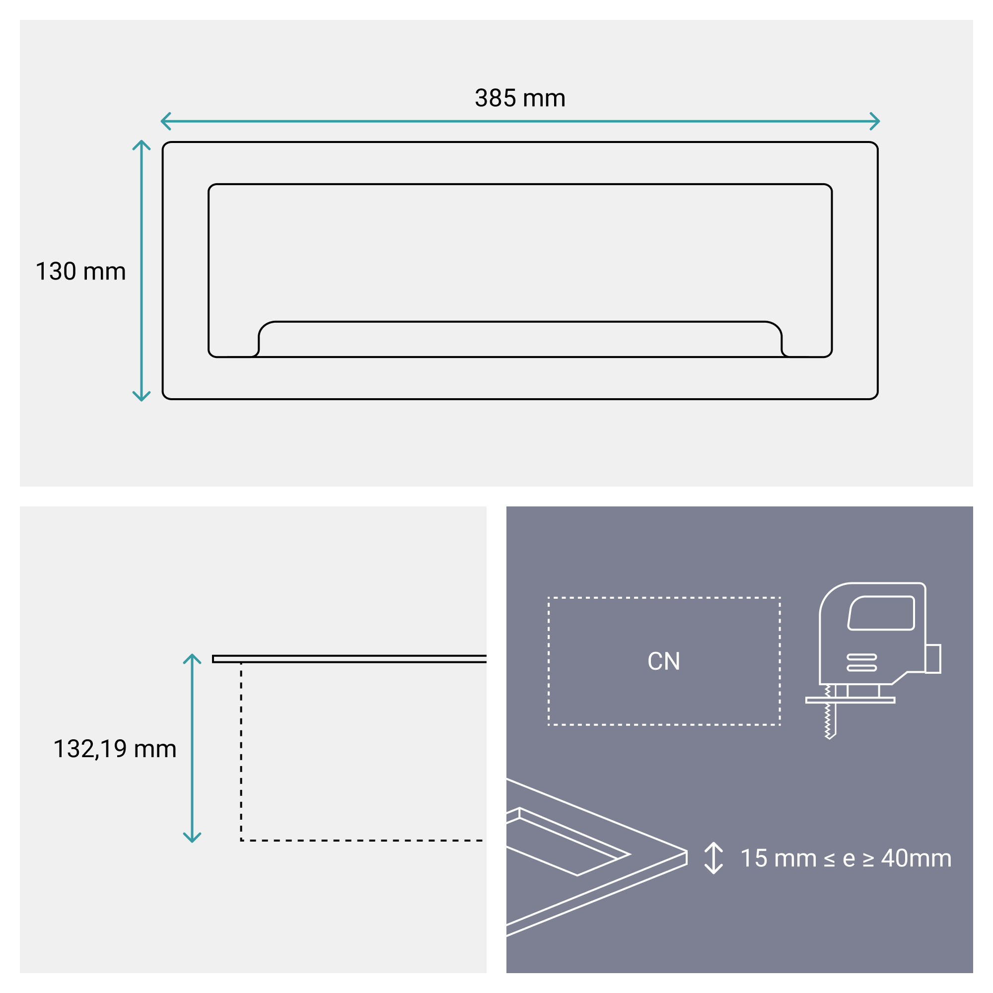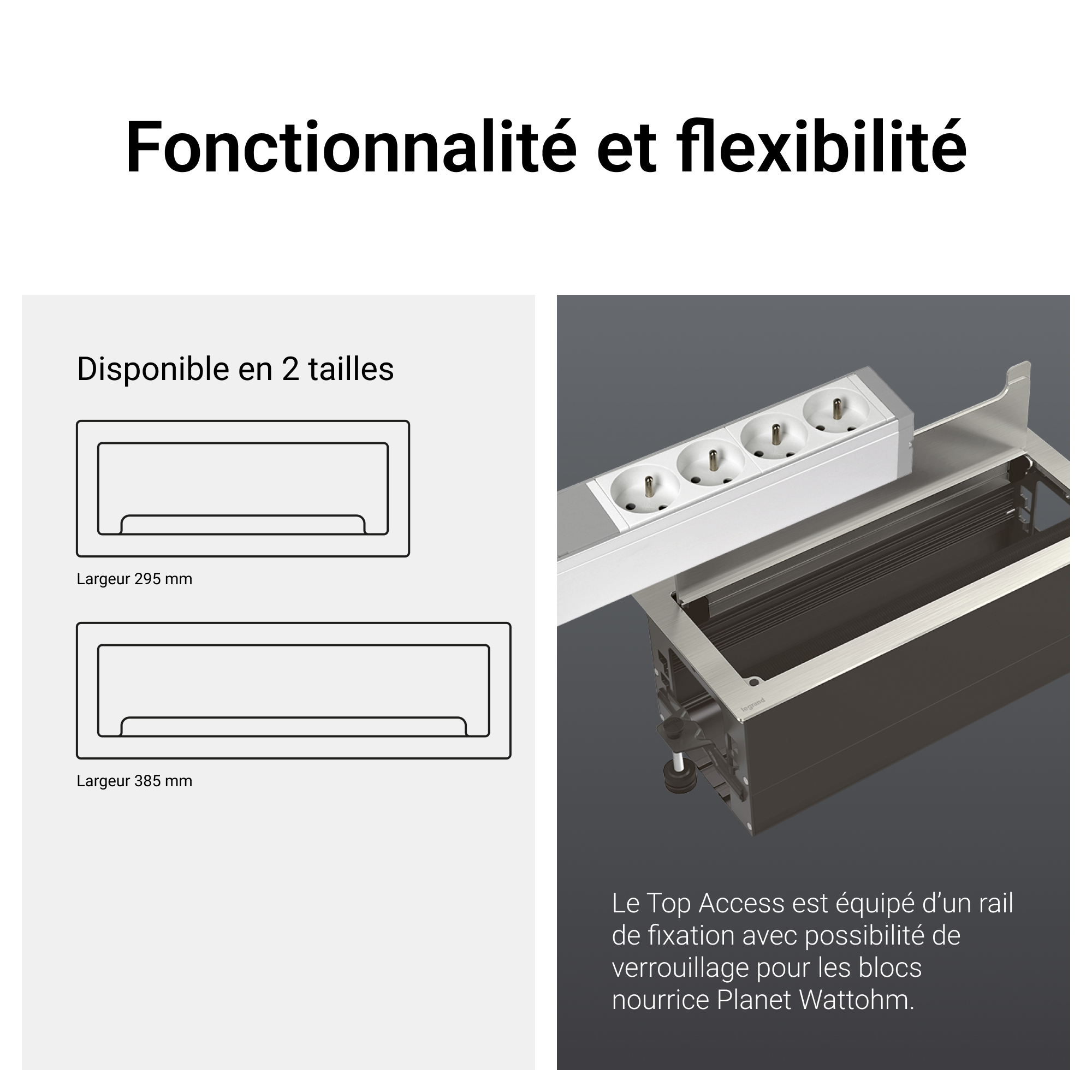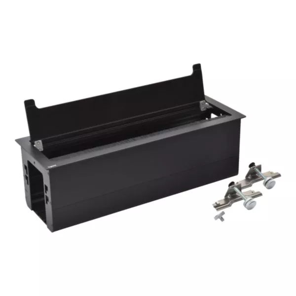 Boîtier Top Access Incara 385mm finition noir pour ranger une nourrice ou un bloc multiprise - à encastrer