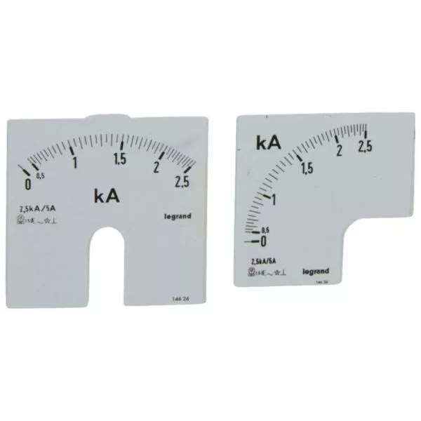Cadrans de mesure pour ampèremètre analogique 0A à 2500A - 1 cadran pour fût rond et 1 cadran pour fût carré