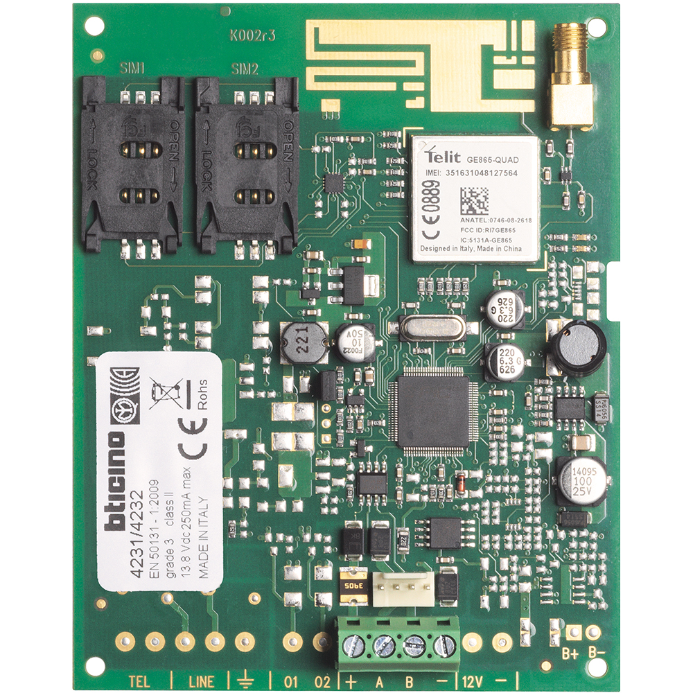 Carte de communication pour transmetteur téléphonique pour alarme intrusion BUS pilotable avec l'App. MyHOME_Up permettant de paramétrer, d'associer, d'utiliser et de créer des scénarios