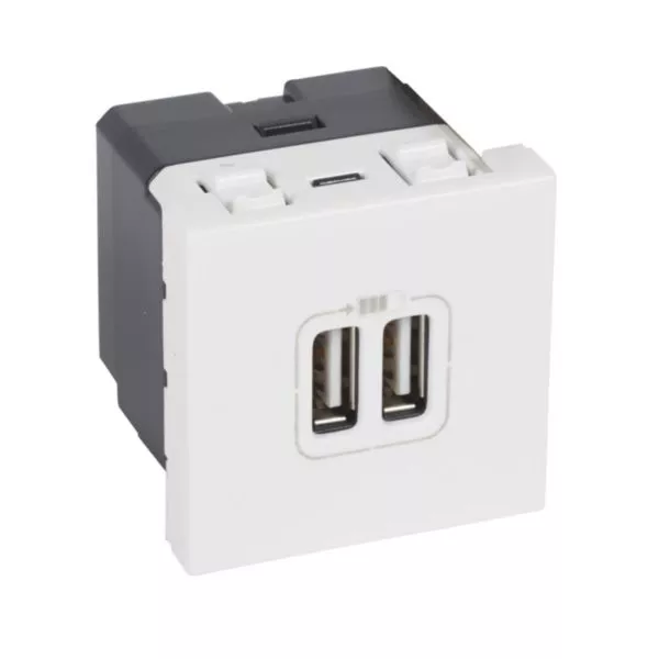 Chargeur double USB 2400mA Type A appareillage 45 Logix 2 modules 230V/5V= blanc Artic