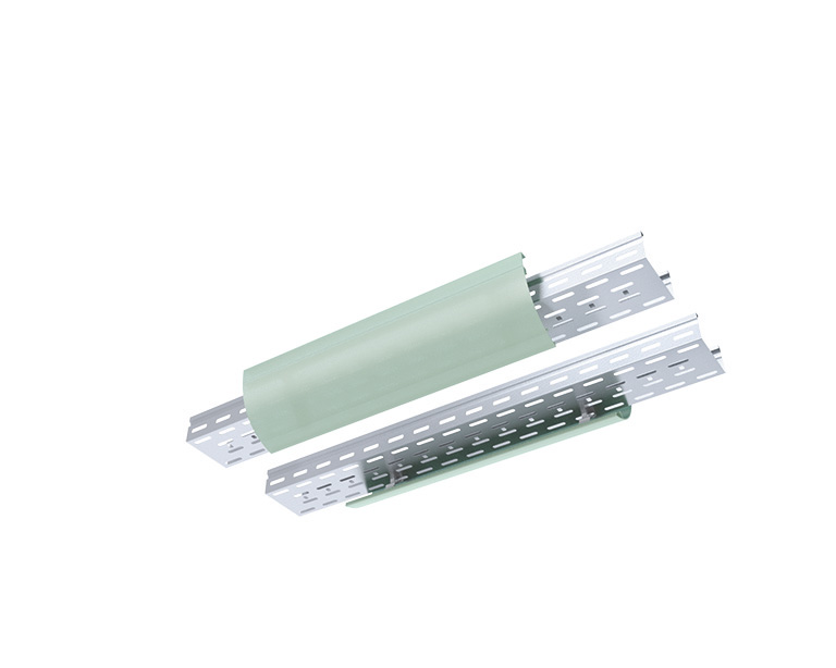 Chemin de câbles perforé dans le fond par des trous alignés, ce qui aide à attacher les câbles ensemble et à les maintenir dedans.