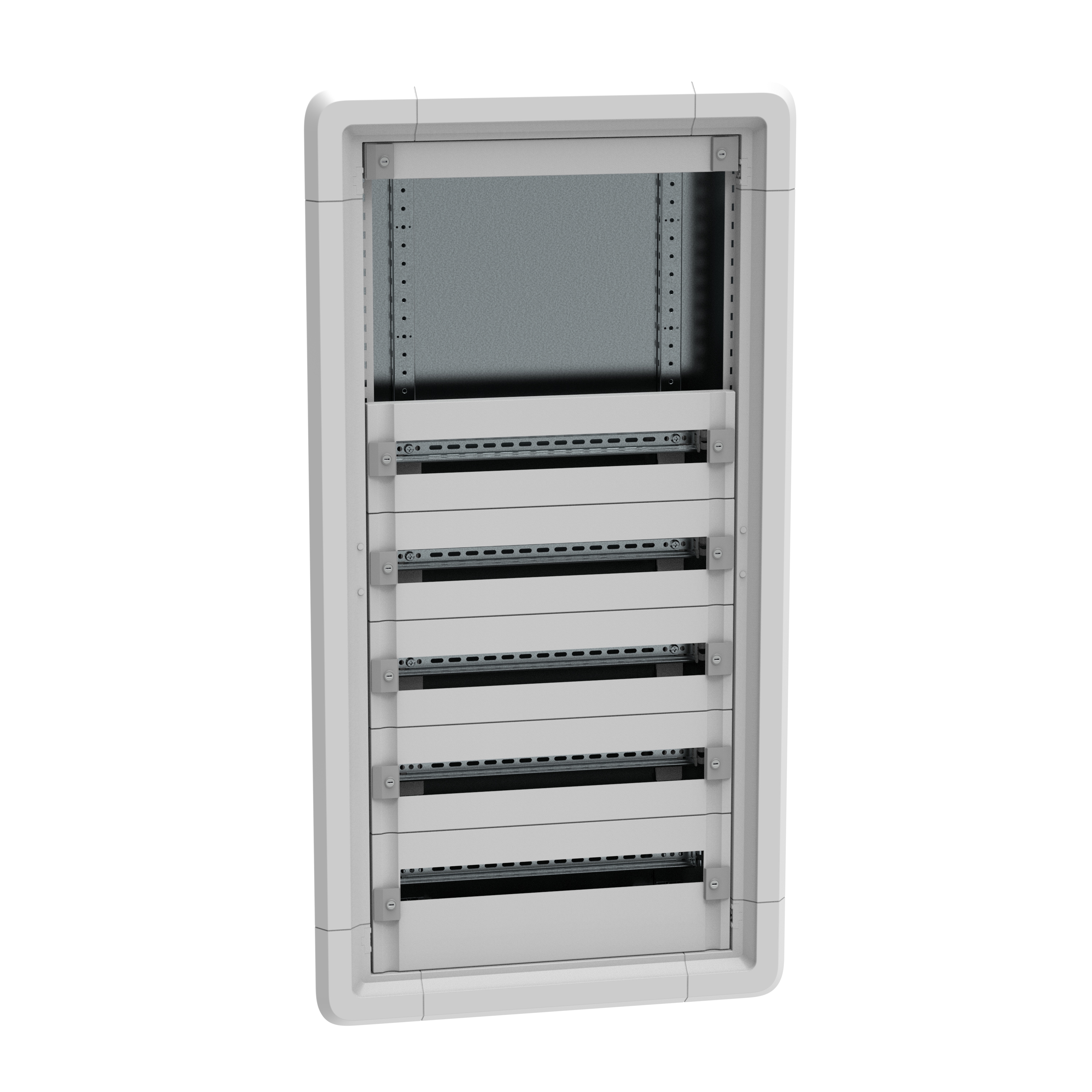 - Profondeur minimale pour montage encastré : 110mm - Evolutif IP40 - IK08 avec porte - Permet la réalisation d'ensembles certifiés selon NF EN 61439-2 et NF EN 61439-3