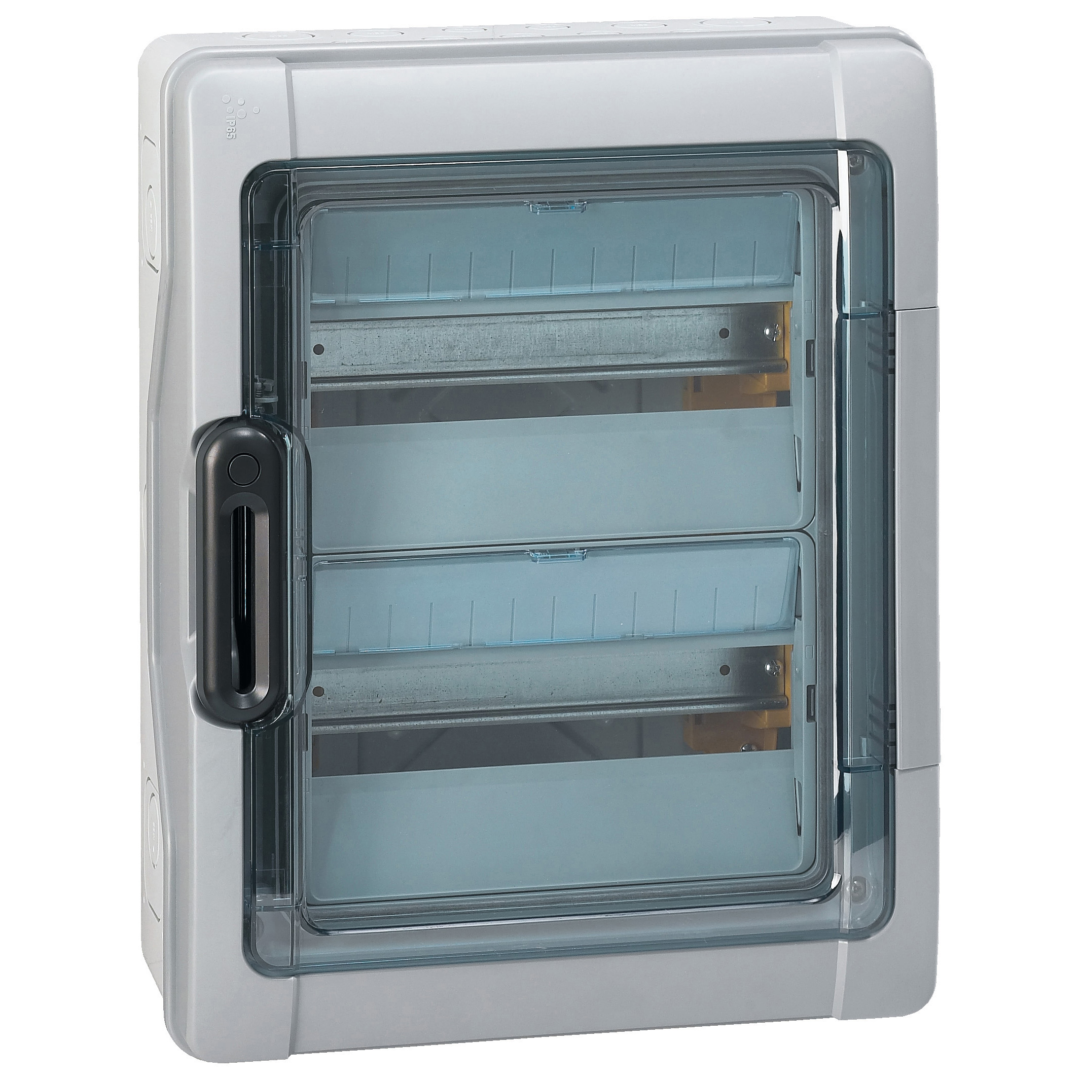 Coffret étanche Plexo³ 2x18 modules avec embouts à perforation directe prémontés IP65 IK09 - Gris