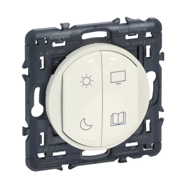 Céliane with Netatmo, la commande sans fils sans pile Self-e jour/nuit/TV permet de commander des scènes de vie associant lumières, volets roulants et prises connectées sans tirer de fils et sans maintenance