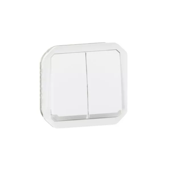 Commande double étanche pour réaliser 3 fonctions lumineuses Plexo IP55 IK08 avec enjoliveur finition blanc