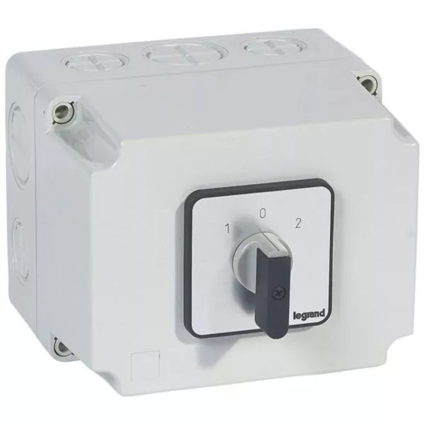 Commutateur à cames inverseur avec position arrêt 45° PR40 - 3P - 6 contacts - boîtier 135x70mm