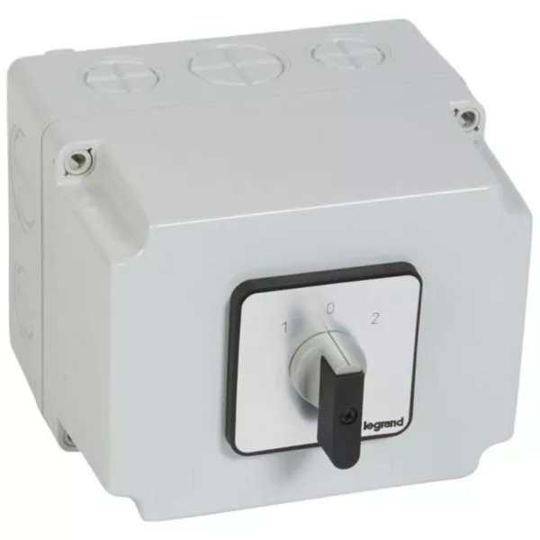 Commutateur à cames inverseur avec position arrêt 45° PR40 - 4P - 8 contacts - boîtier 135x70mm