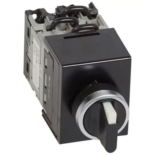 - Tête de commande à manette Ø22mm - 3 pôles - Gamme PR12 - Valeur maximum en AC21 : 16A - 6 contacts à ouverture positive et double coupure des pôles